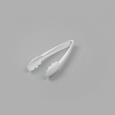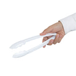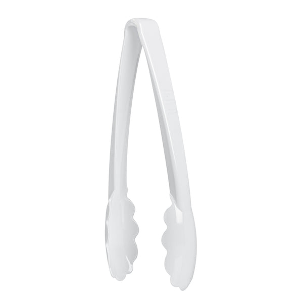 WHITE HEAVY-DUTY DISPOSABLE PLASTIC TONGS - SCALLOPED - 9"