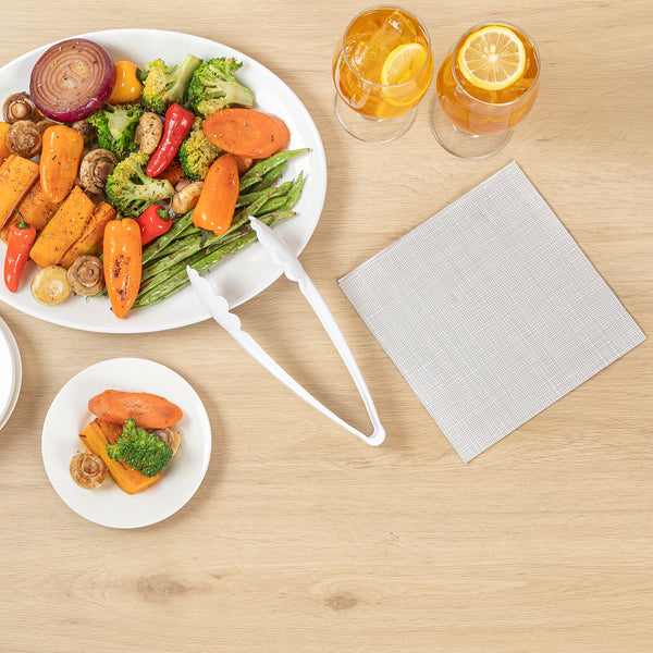 Simplify serving at events with reliable disposable serving tongs. The Cater Tek Extra Heavy-Duty Disposable Serving Tongs with scalloped edges offer a secure grip on various food items, ensuring effortless and hygienic service. Made from heavy-duty plastic, these plastic food tongs are designed to withstand regular use, reducing the need for frequent replacements and enhancing operational efficiency. With a length of 9 inches, these scalloped serving tongs are perfect for serving salads and pastries, making them ideal for both catered events and buffets. The food-grade material guarantees safety, while the disposable design reduces clean-up time, allowing for quick turnover at busy gatherings. Additionally, the recyclable nature of these tongs supports eco-friendly practices in foodservice settings. Equip your establishment with these versatile tongs to maintain cleanliness and efficiency. Each order includes 100 Cater Tek Extra Heavy-Duty Disposable Serving Tongs.