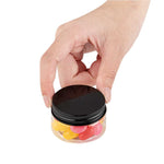 Chef 101 1 oz Round Clear Plastic Candy and Snack Jar - with Black Aluminum Lid - 2