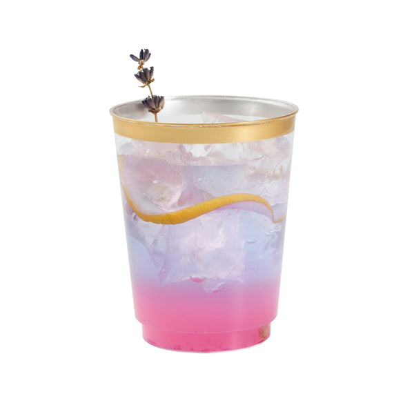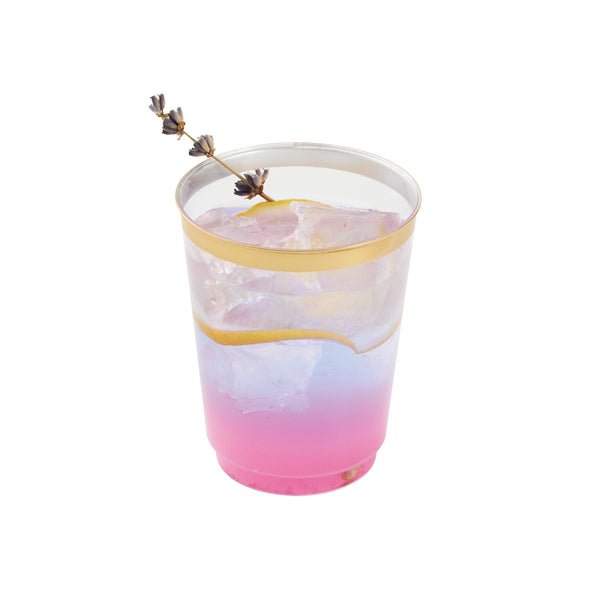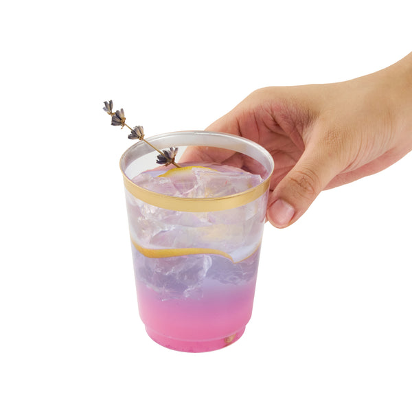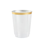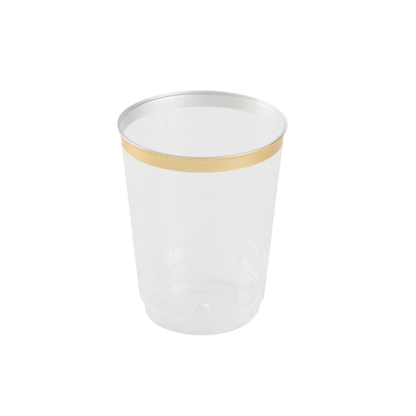 10 OZ CLEAR PLASTIC TUMBLER - WITH GOLD RIM