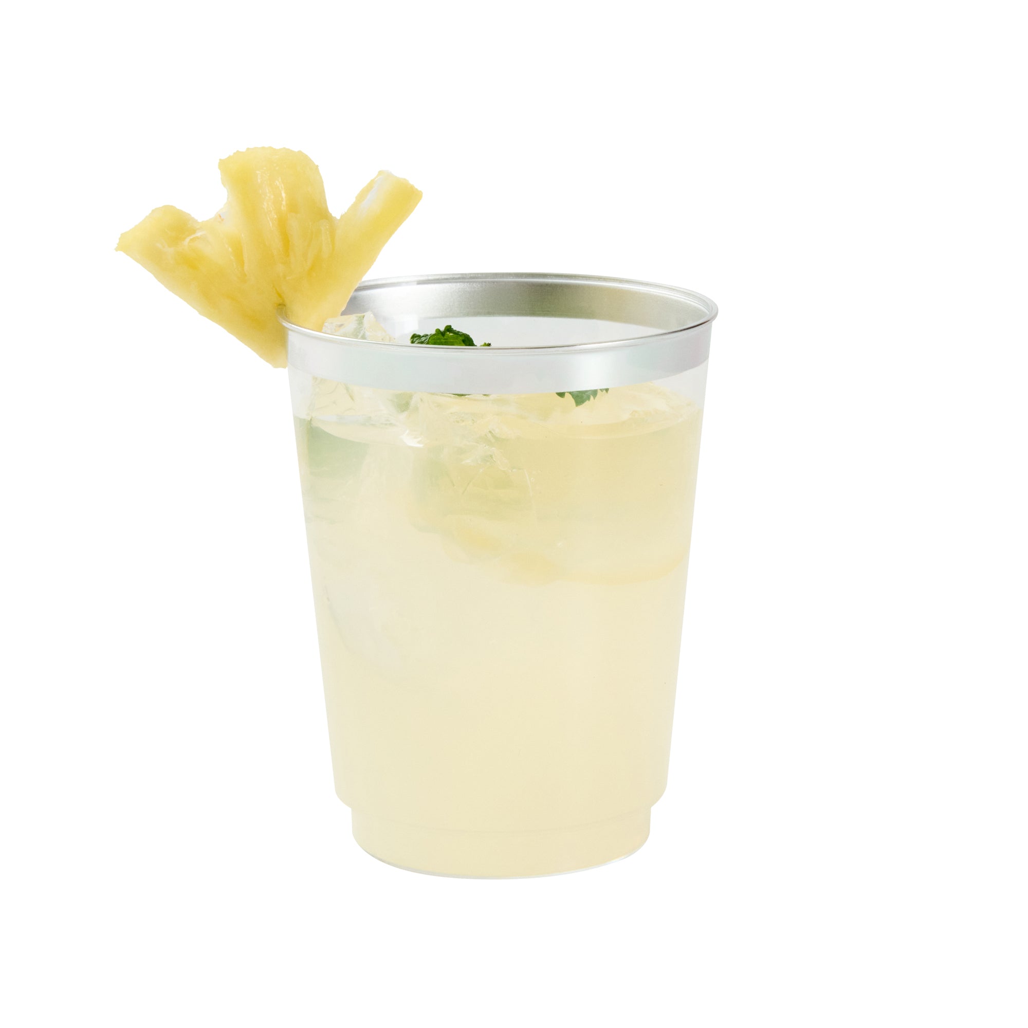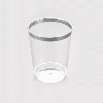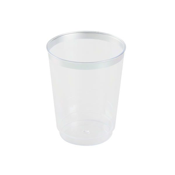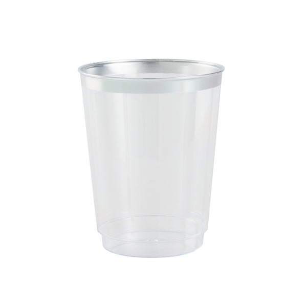10 OZ CLEAR PLASTIC TUMBLER - WITH SILVER RIM