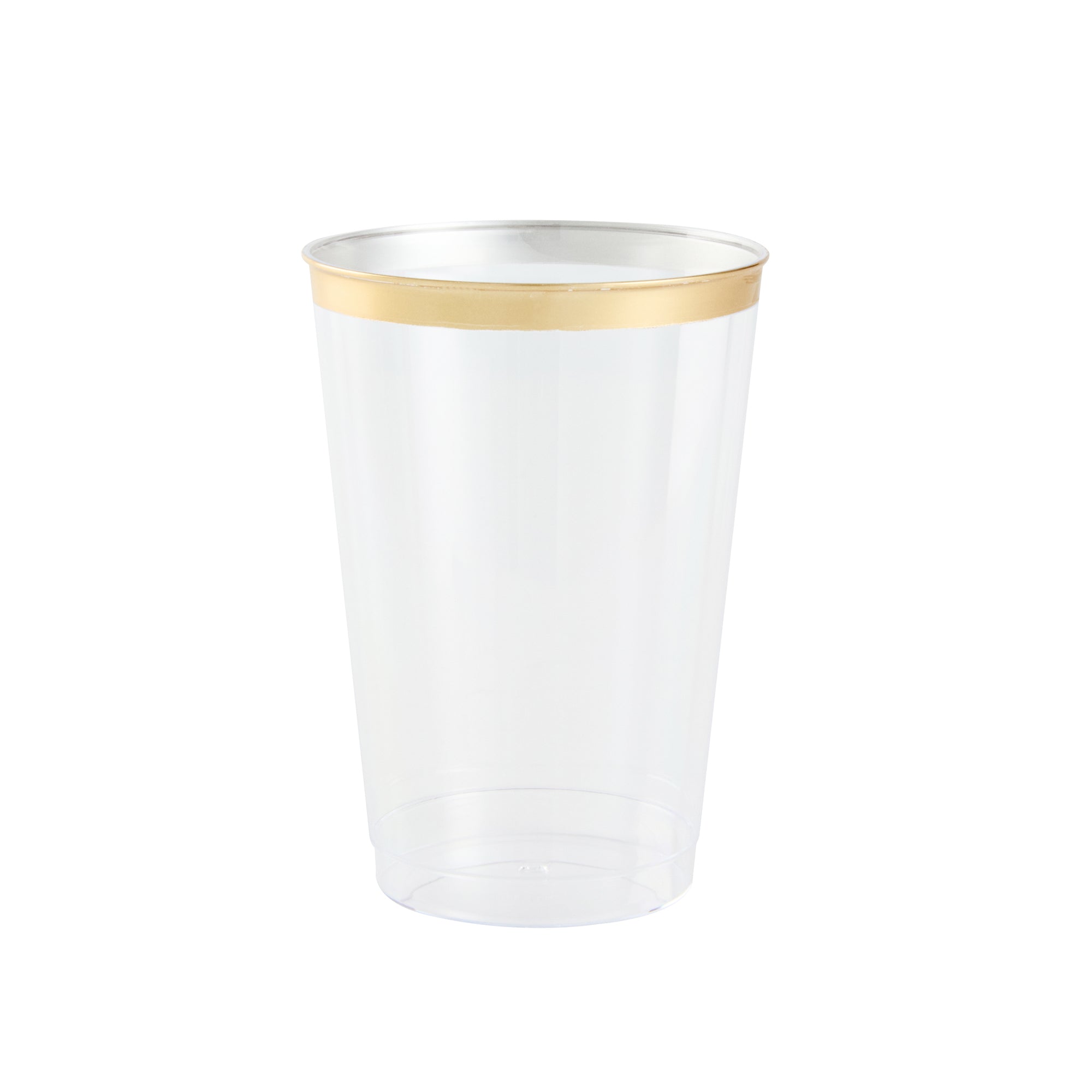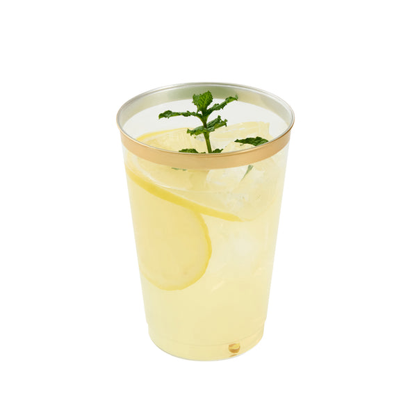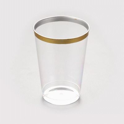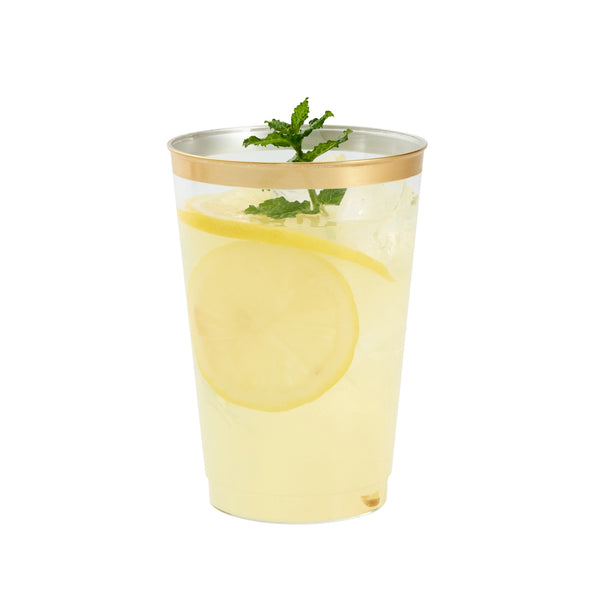 12 OZ CLEAR PLASTIC TUMBLER - WITH GOLD RIM