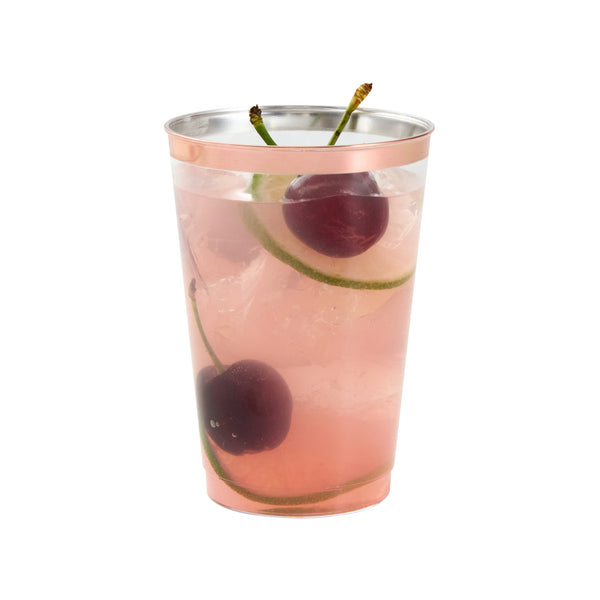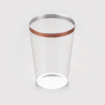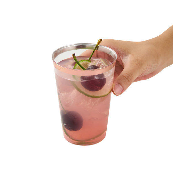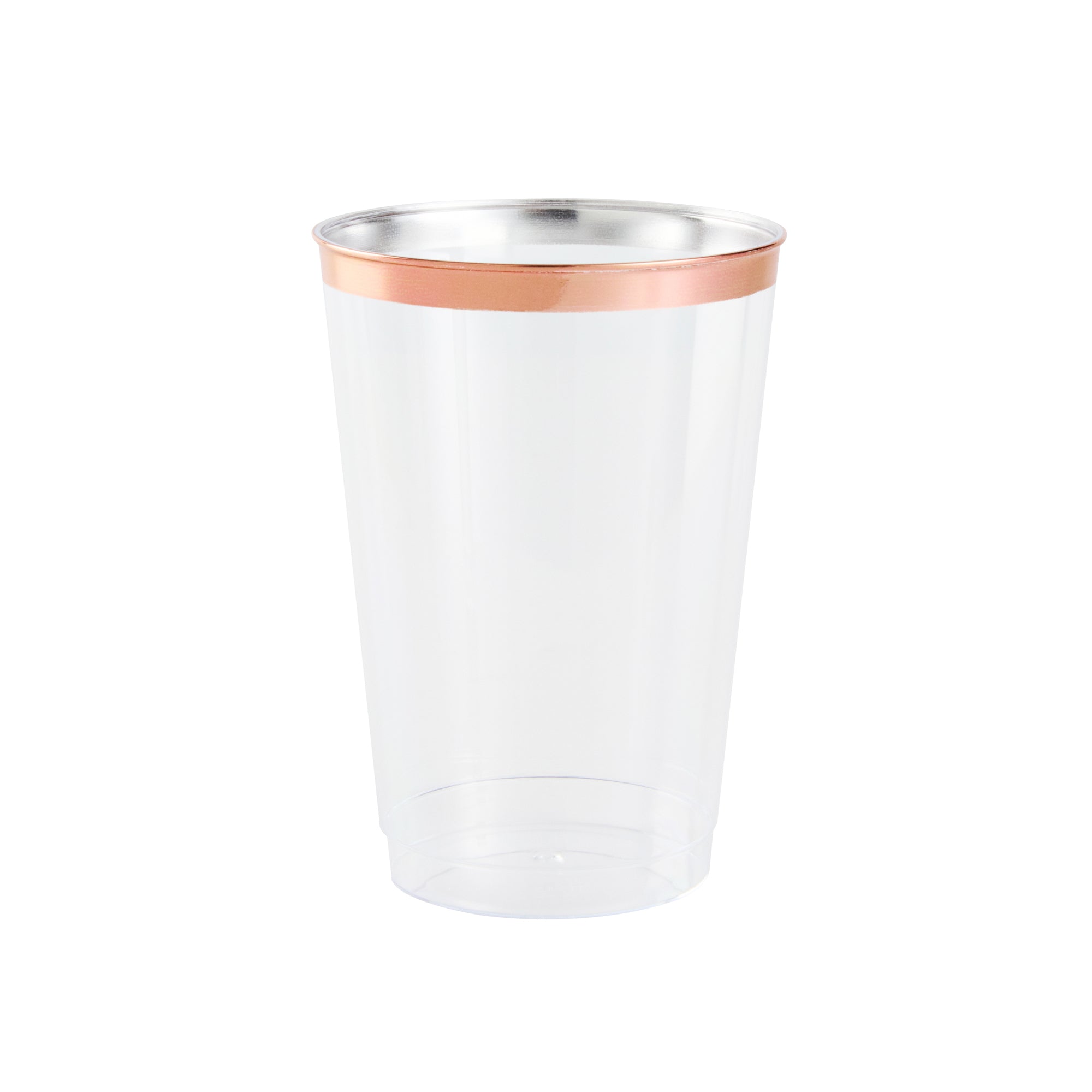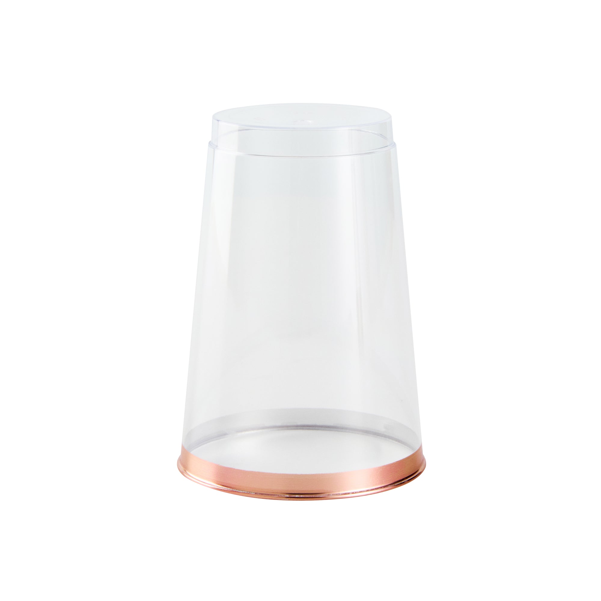 12 OZ CLEAR PLASTIC TUMBLER - WITH ROSE GOLD RIM