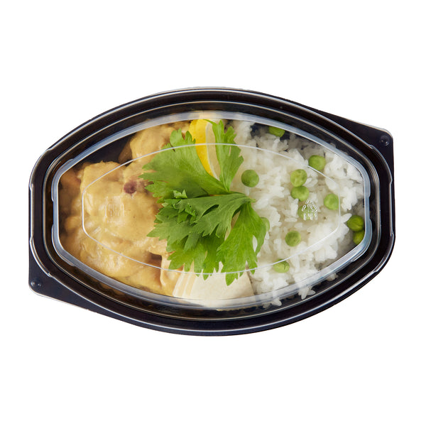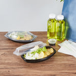 12 OZ OVAL BLACK PLASTIC FOOD CONTAINER - WITH CLEAR LID