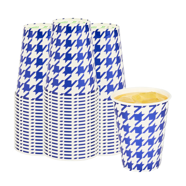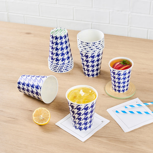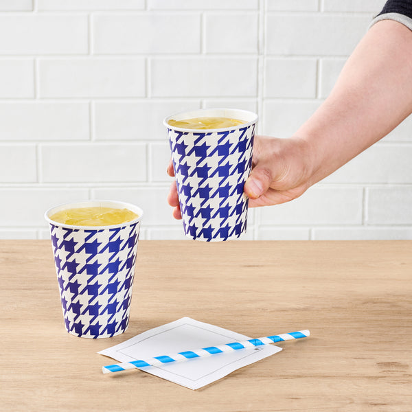 12 OZ ROUND BLUE HOUNDSTOOTH PAPER COLD CUP