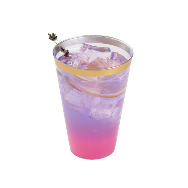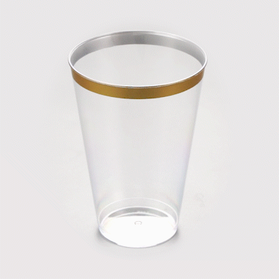 14 OZ CLEAR PLASTIC TUMBLER - WITH GOLD RIM