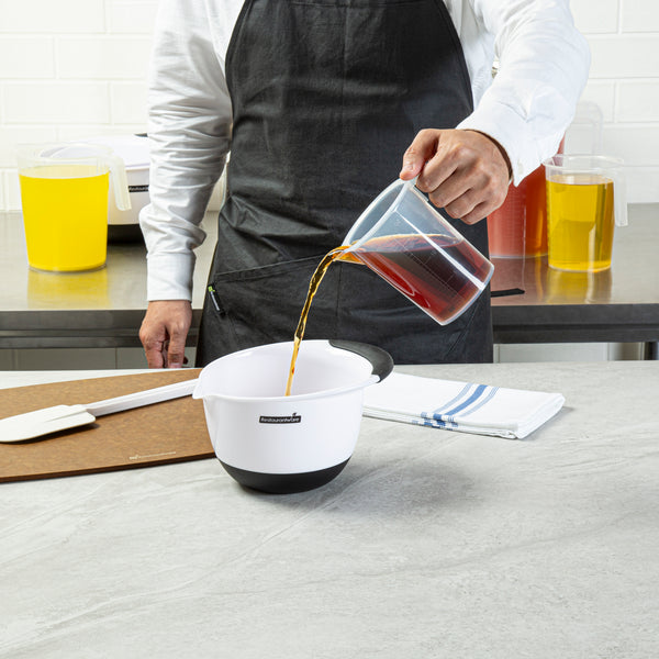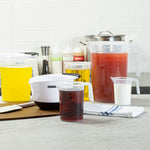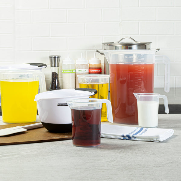 Make measuring effortless with our Chef 101 16-ounce Clear Plastic Measuring Cups, designed for accuracy in professional and home kitchens. Crafted from premium plastic, these food-safe measuring beakers are durable and crack-resistant for long-lasting performance. Featuring clearly embossed metric and imperial graduations, these plastic measuring containers allow for precise measurement of liquids and dry ingredients. Designed with a conical spout, these plastic measuring pitchers enable smooth, mess-free pouring with complete control over flow speed. The sturdy I-beam handle with a thumb grip on these plastic measuring cups ensures a comfortable and steady hold, reducing spills. The transparent finish of these liquid measuring cups allows for easy viewing of contents at a glance. Measuring 4.3 inches in length by 3.5 inches in width by 4.9 inches in height, these plastic measuring containers provide a convenient 16-ounce capacity for everyday cooking and baking needs. Sold in a 10 count box.