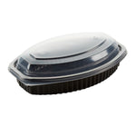 16 OZ OVAL BLACK PLASTIC FOOD CONTAINER - WITH CLEAR LID