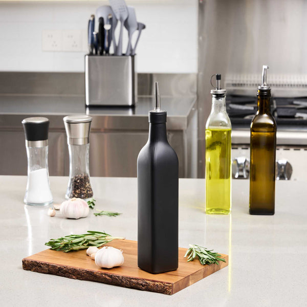 - Black finish keeps light from seeping into the bottle to maintain oil's quality