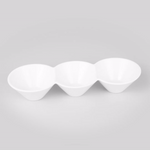 - 3 connected bowls allow for organized presentation of multiple items in single unit