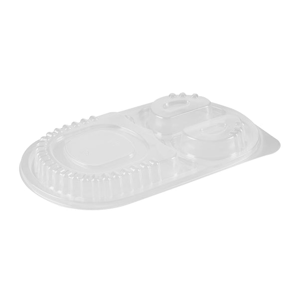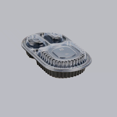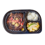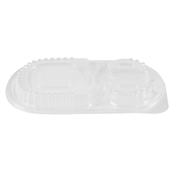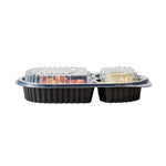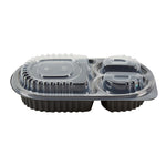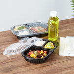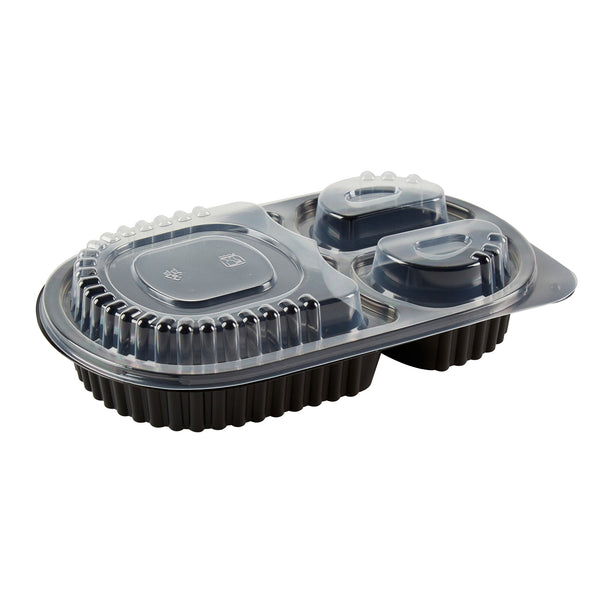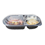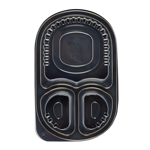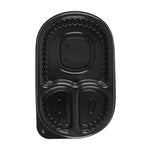 19 OZ OVAL BLACK PLASTIC 3 COMPARTMENT FOOD CONTAINER - WITH CLEAR LID