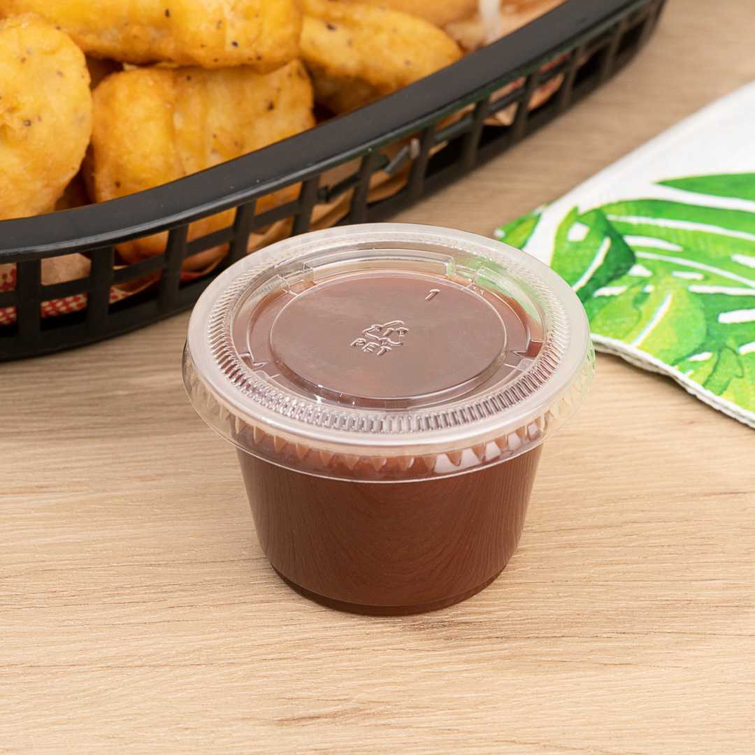 Show off your samples in our Chef 101 2.5-ounce Round Clear Plastic Portion Cups. Constructed from premium plastic, these small serving cups are microwave-safe for heating up bite-sized samples that have been stored in the refrigerator. With a clear finish, these jello shot cups are transparent to provide quick identification of your condiments. Coordinate these plastic portion cups with our lids to expertly seal your servings of ketchup, mustard, or mayonnaise. For eco-friendly cleanup at your restaurant, these dressing cups are recyclable. Built to be sturdy, these serving cups resist punctures to prevent leaks. These plastic souffle cups measure 2.5 inches in diameter by 1.5 inches in height and contain up to 2.5 ounces. Sold in a 2,0000 count box. Lids (SKU: RWP0624C) are available and sold separately.
