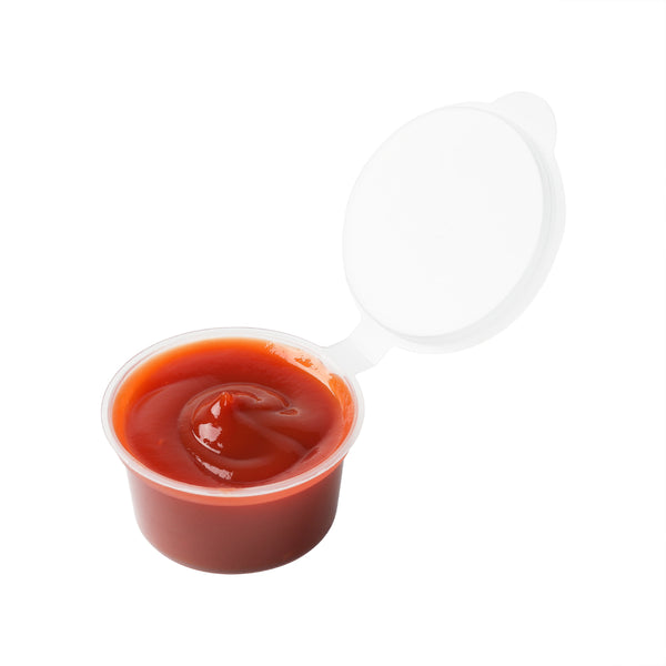 Transport condiments securely with spill-proof convenience. Chef 104 Spill-Proof 2 Oz Sauce Cup features a hinged lid that effectively prevents spills during transport, ensuring your sauces remain intact. The microwavable design of this 2 oz sauce cup allows for efficient reheating of leftover condiments, making it an ideal choice for quick-service restaurants and takeout establishments. Constructed from durable polypropylene plastic, this clear condiment cup is not only robust but also recyclable, promoting sustainable practices in busy kitchens. The 2.87-inch diameter and 1-inch height of this plastic sauce container make it perfect for serving precise portions of dressings or dips. Its stackable design facilitates efficient storage and organization, crucial for fast-paced foodservice operations. Elevate your meal prep services or catering events with these versatile portion cups. Each order includes 2000 Chef 104 Spill-Proof 2 Oz Sauce Cup.