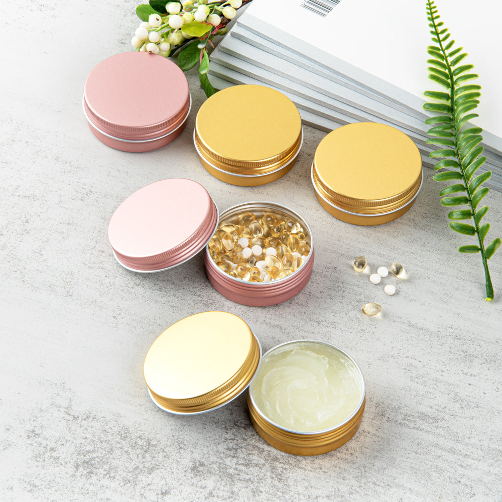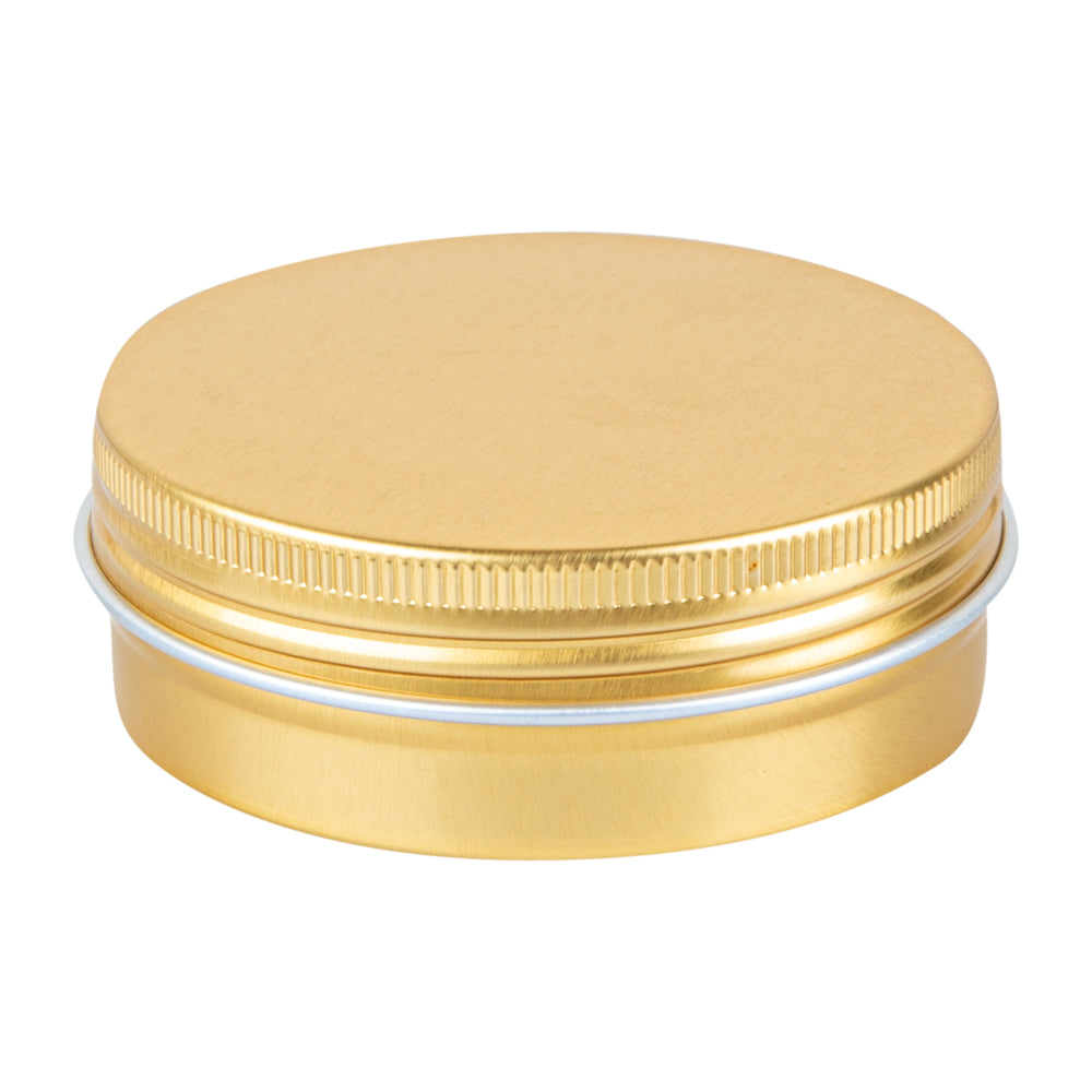 2 OZ ROUND GOLD TIN CONTAINER - WITH SCREW LID