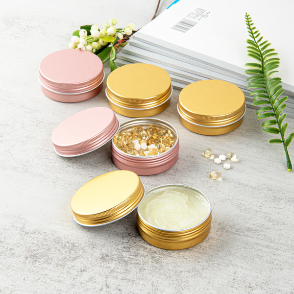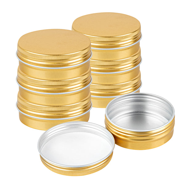 Organize your tiny paper clips using our Chef 101 2-ounce Round Gold Tin Containers. The premium construction of these aluminum boxes lets them stay durable for a very long time. These small airtight containers come with tight-fitting lids that can be screwed to close or open the boxes. Carry these lightweight, small storage boxes anywhere, as they are manufactured with a compact and sleek design. With a plain gold surface, these round small decorative storage boxes let you tie a ribbon on them or paste a sticker to customize them when gifting your loved ones. These 2-ounce round aluminum containers for storage measure 2.75 inches in diameter and 1 inch in height each and let you store a variety of things. Sold in a 10 count box.