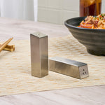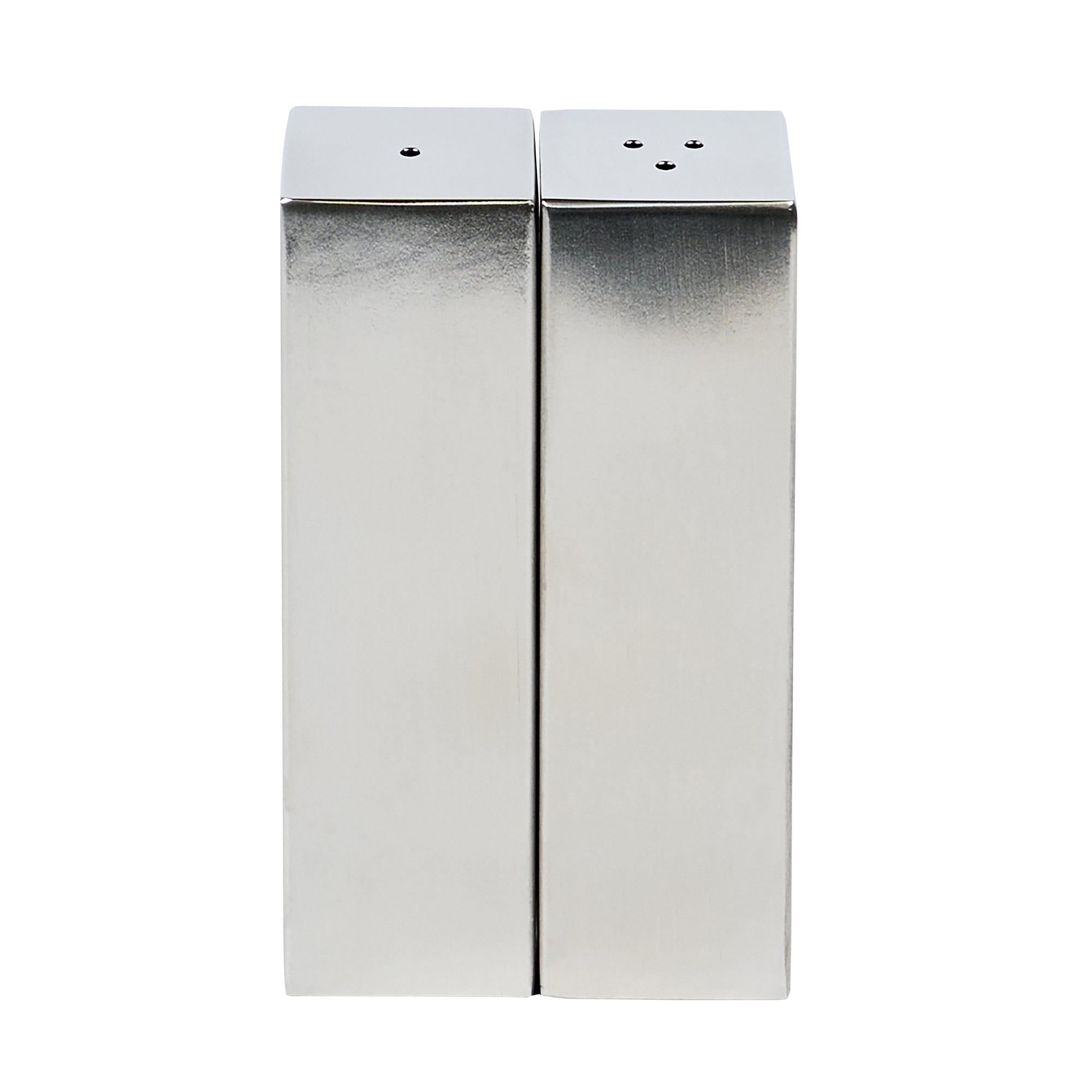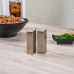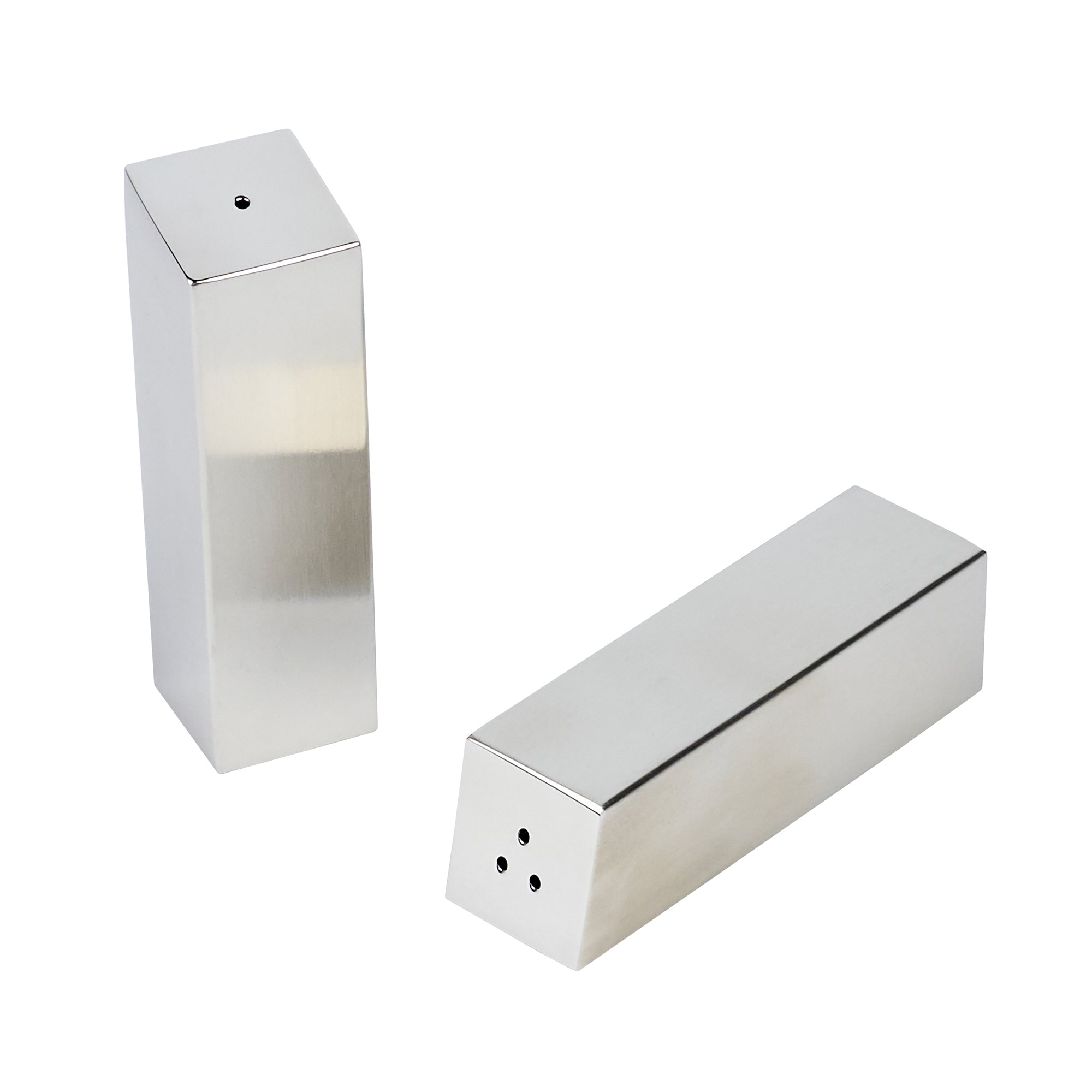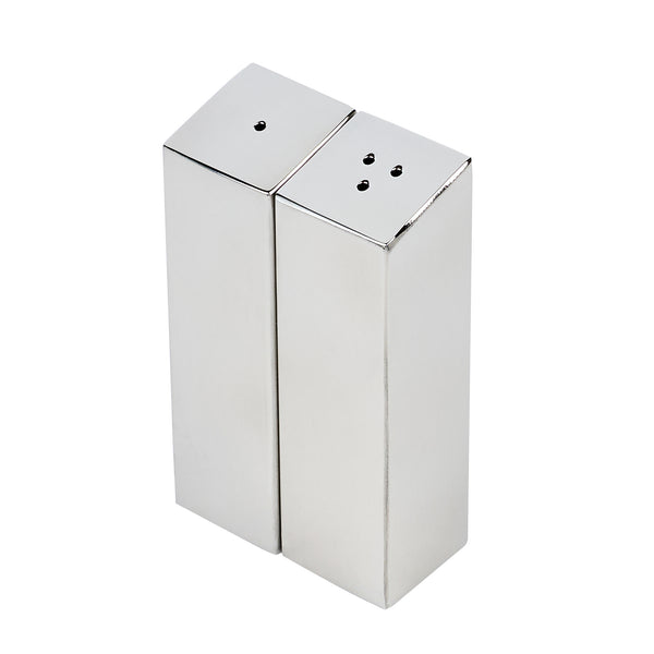 SILVER STAINLESS STEEL RECTANGULAR SALT AND PEPPER SHAKER SET