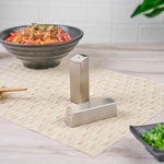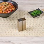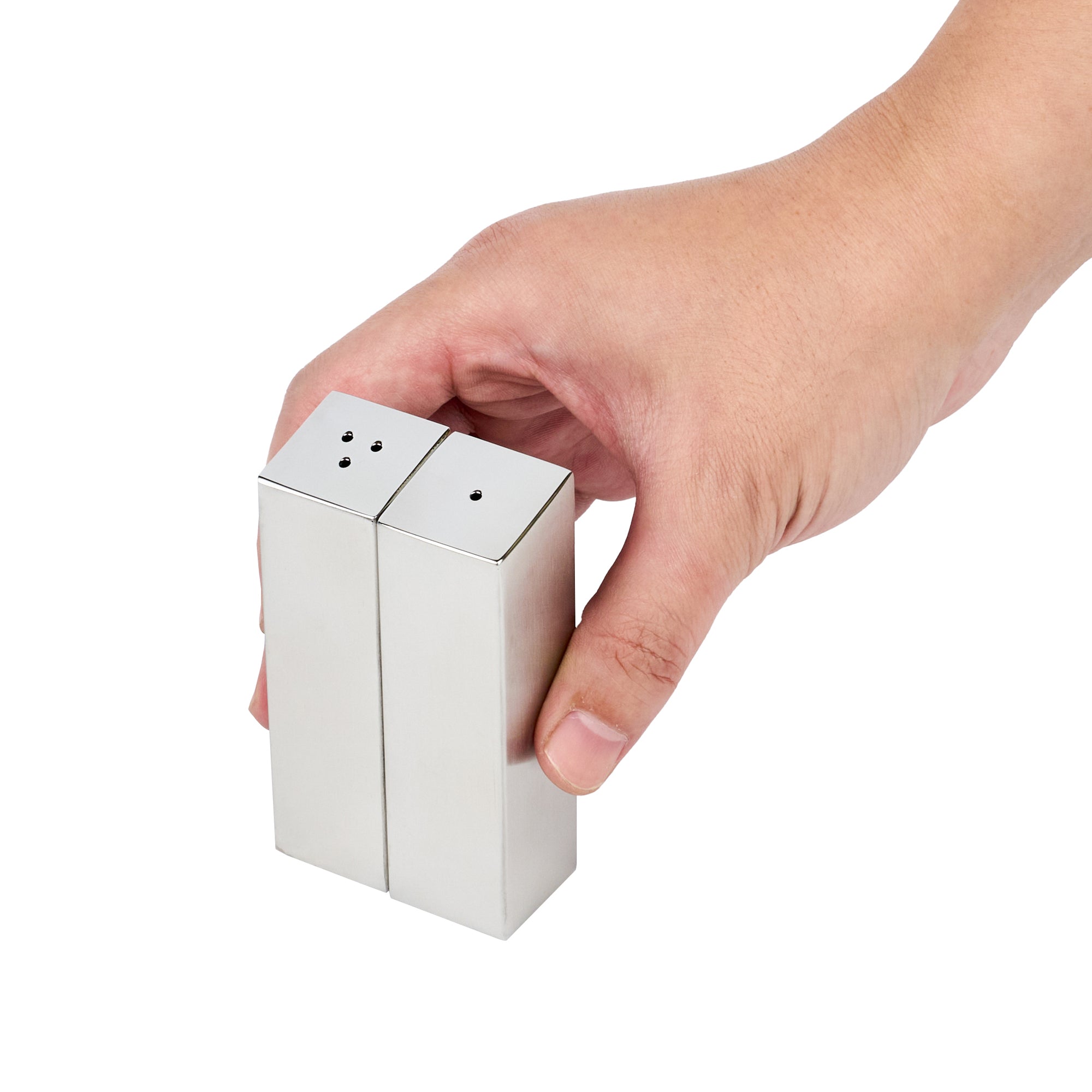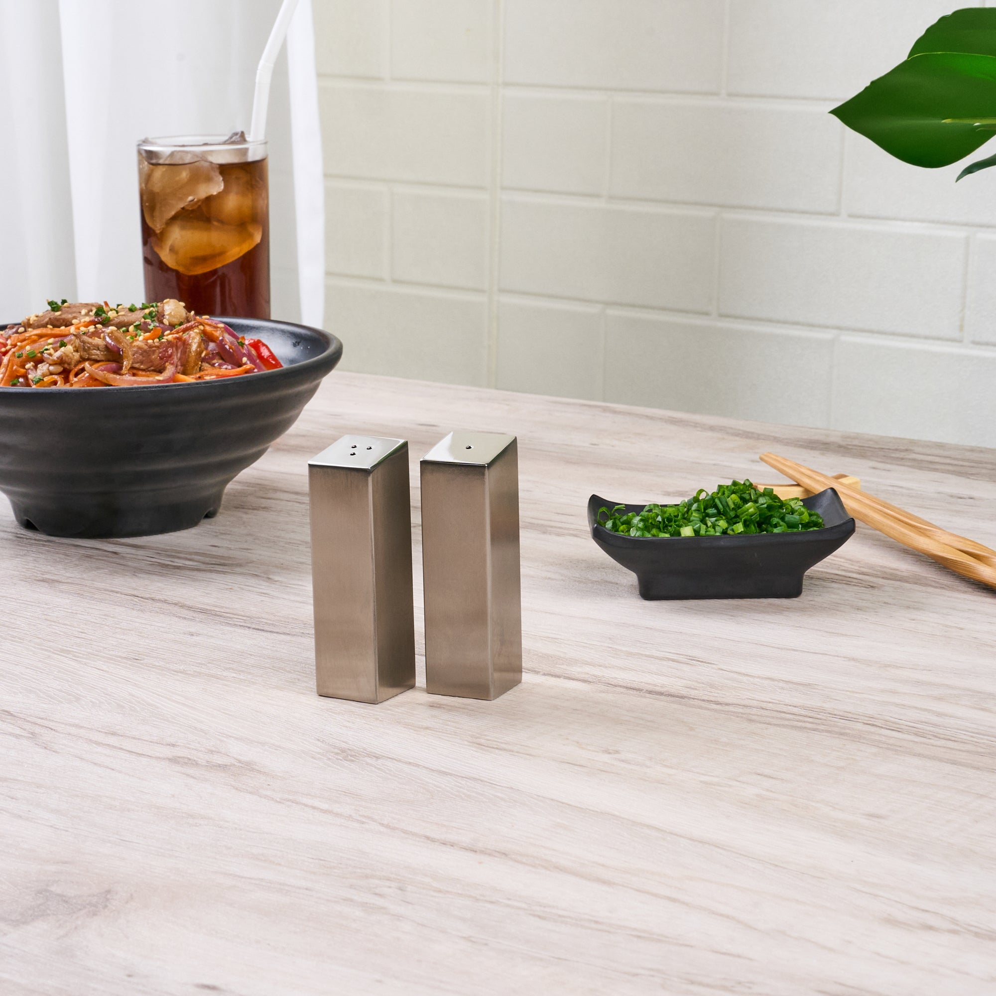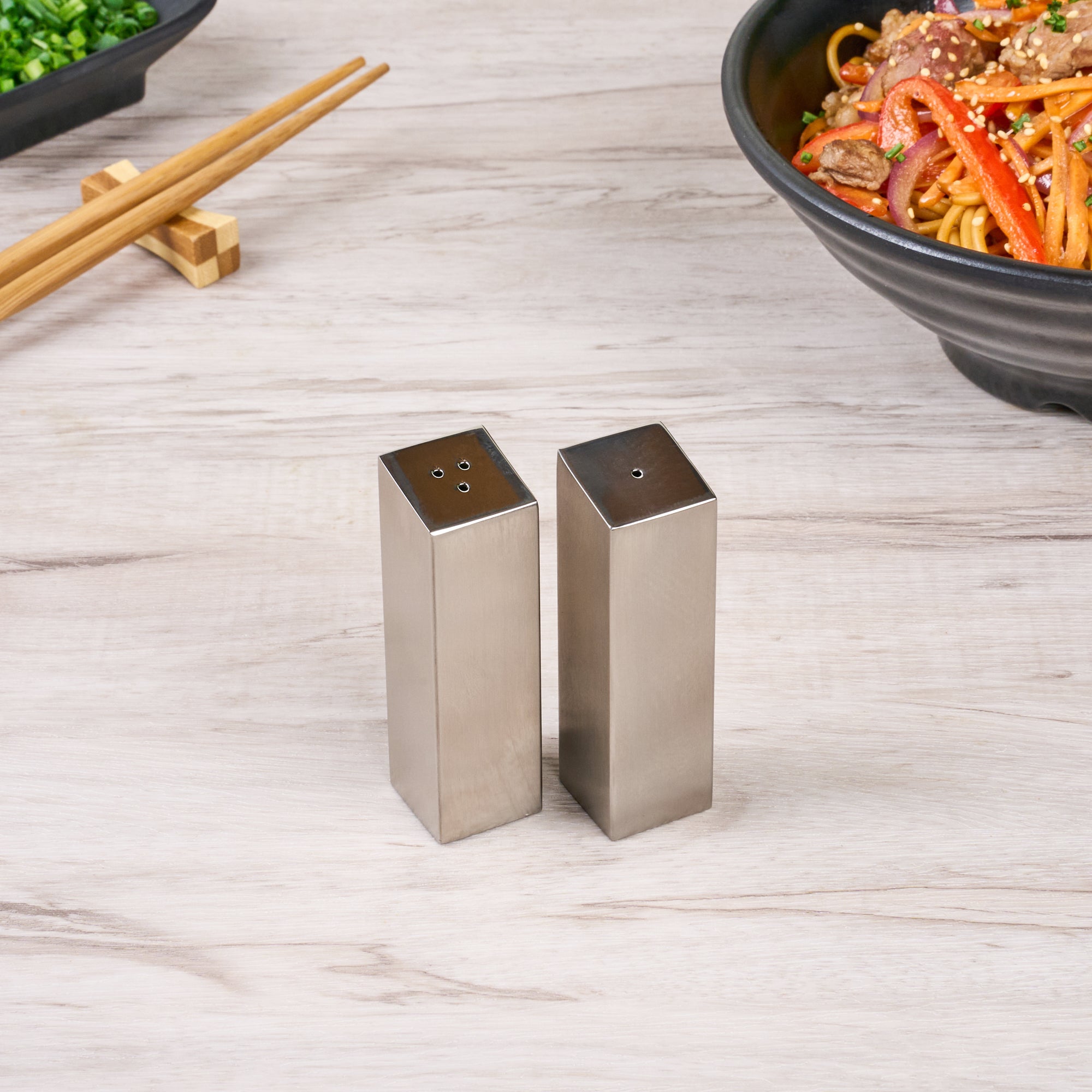 SILVER STAINLESS STEEL RECTANGULAR SALT AND PEPPER SHAKER SET