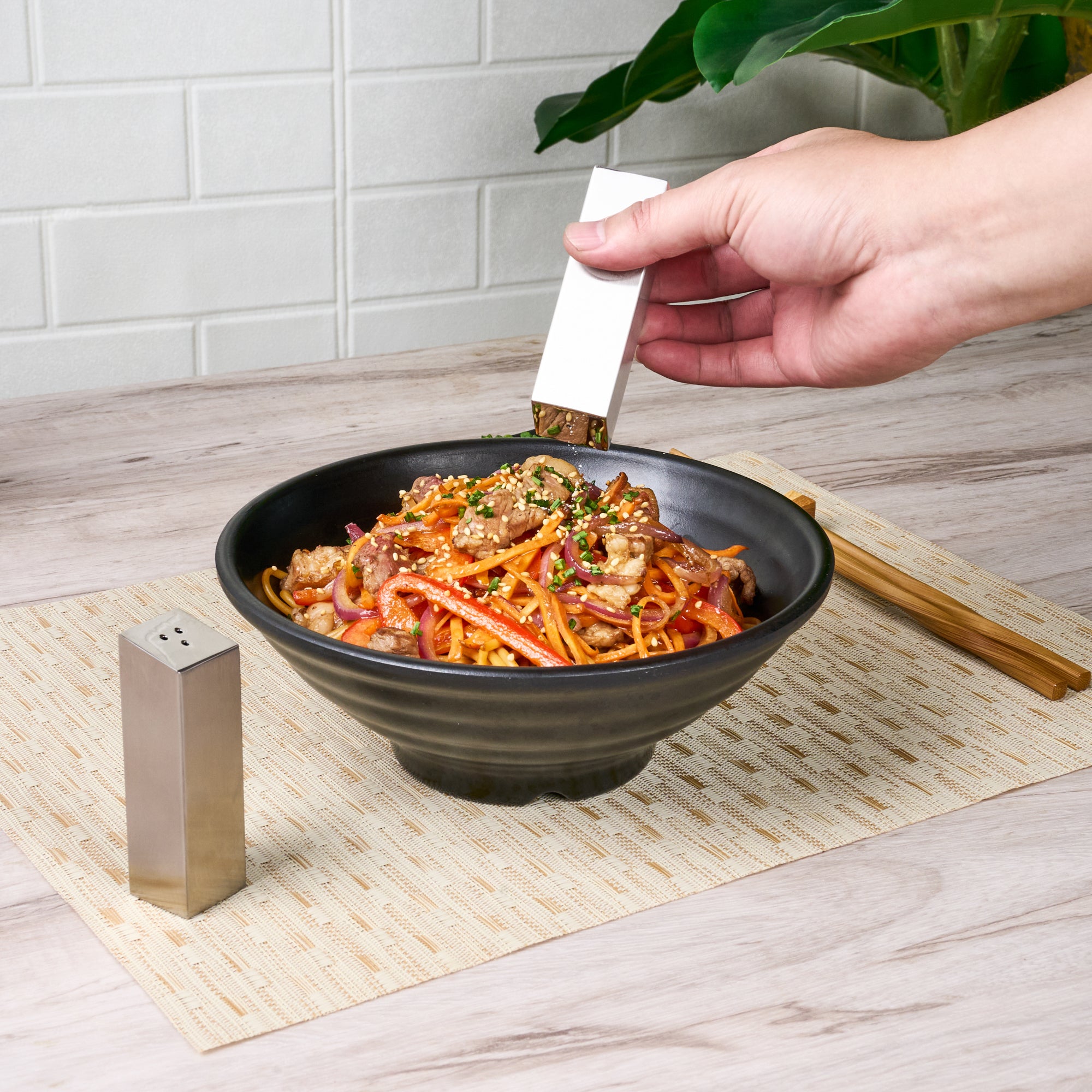 Elevate your dining presentation with these chic tabletop essentials. The Chef 101 Stainless Steel Salt and Pepper Shakers feature a sleek stainless steel design that enhances upscale bar aesthetics, making them perfect for stainless steel salt and pepper shakers aficionados. Their trendy wedge style fits seamlessly into modern restaurant themes, offering a salt and pepper shaker set that complements any decor. With a convenient 2-ounce capacity, these portable salt pepper dispensers minimize the need for frequent refills, boosting operational efficiency. Their dishwasher-safe construction ensures quick turnaround times in busy kitchens, simplifying maintenance and allowing staff to focus on exceptional customer service. Measuring at a compact 1 inch by 1 inch by 3.3 inches, these shakers fit comfortably on any table, providing a stylish yet unobtrusive addition to your dining setup. Enhance your foodservice operations with these indispensable shakers. Each order includes 1 Chef 101 Stainless Steel Salt and Pepper Shakers.