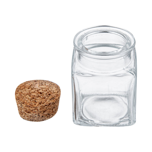 2 OZ SQUARE CLEAR GLASS HERB STORAGE JAR - WITH CORK LID