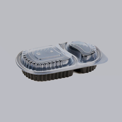 20 OZ OVAL BLACK PLASTIC FOOD CONTAINER - WITH CLEAR DOME LID