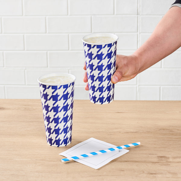 20 OZ ROUND BLUE HOUNDSTOOTH PAPER COLD CUP