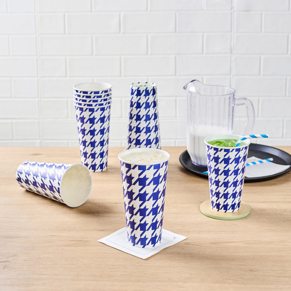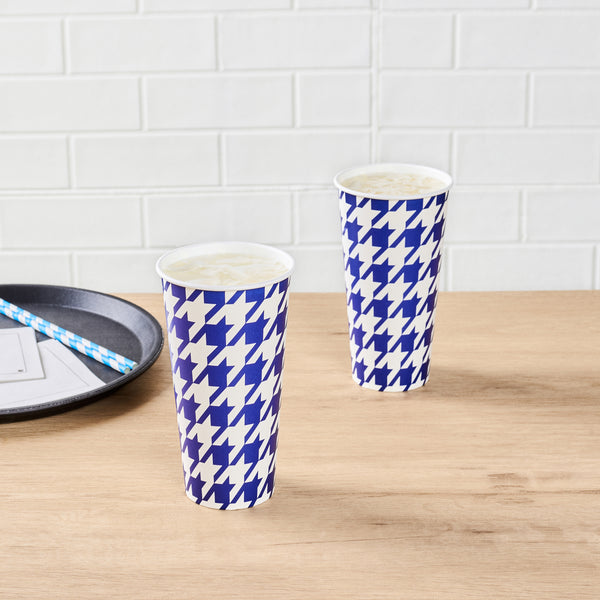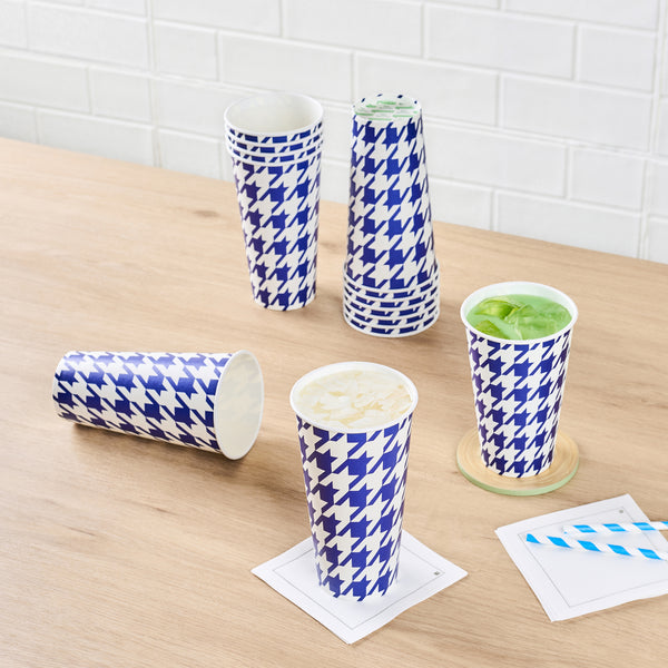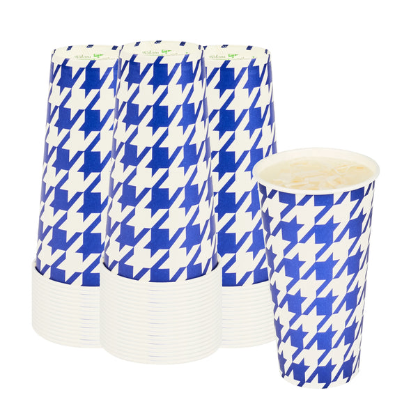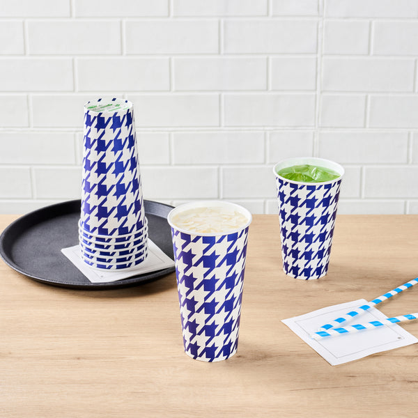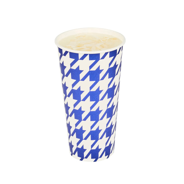 20 OZ ROUND BLUE HOUNDSTOOTH PAPER COLD CUP