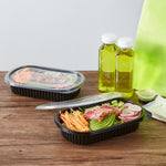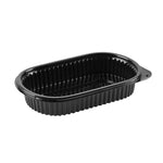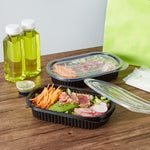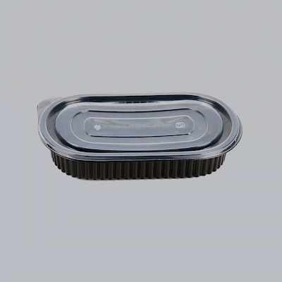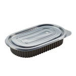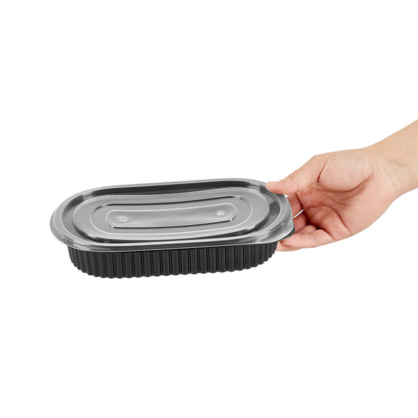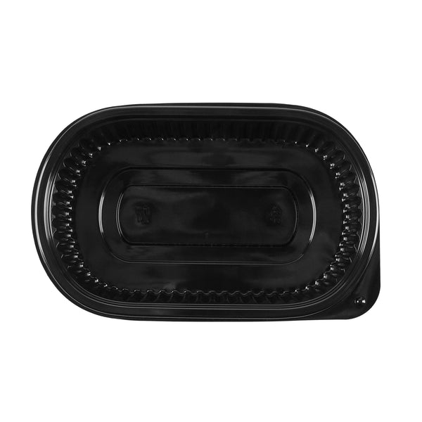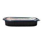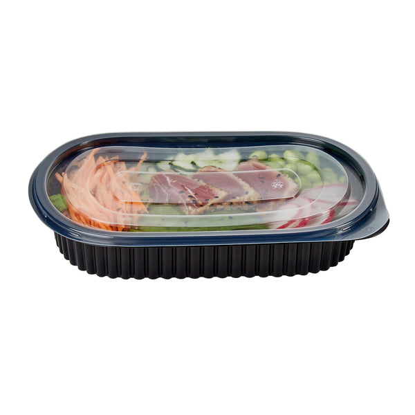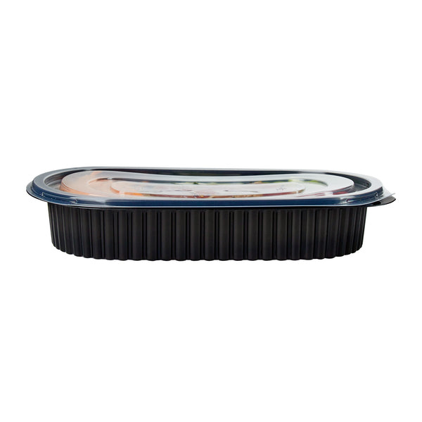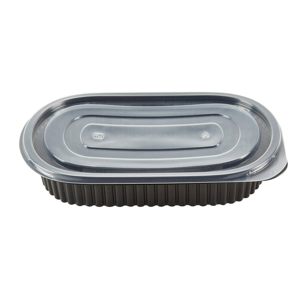25 OZ OVAL BLACK PLASTIC FOOD CONTAINER - WITH CLEAR FLAT LID