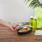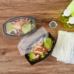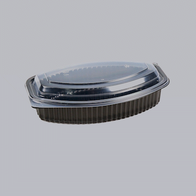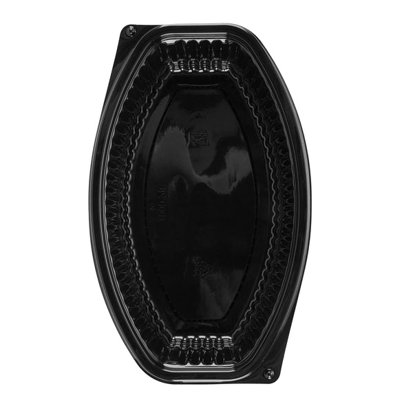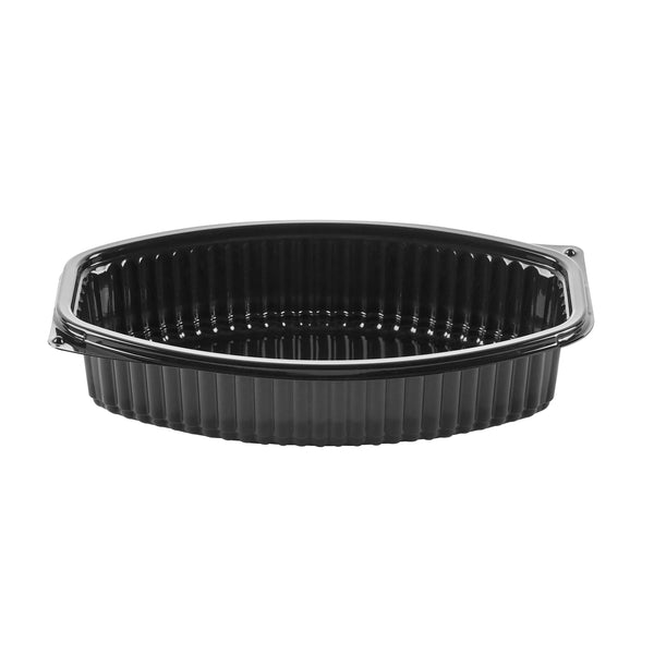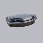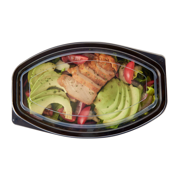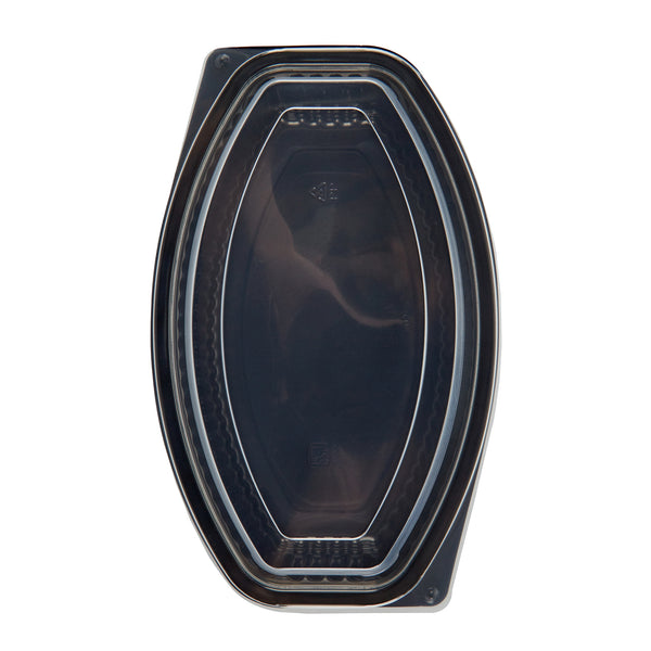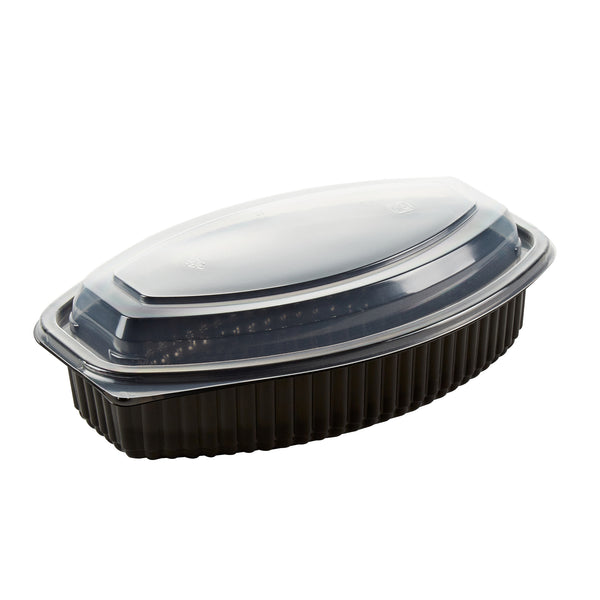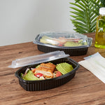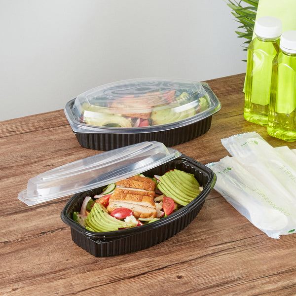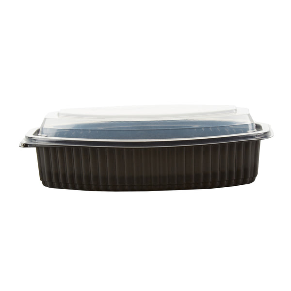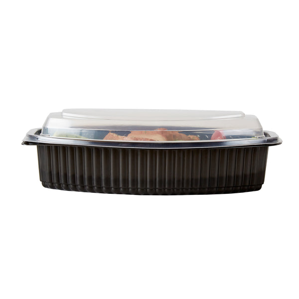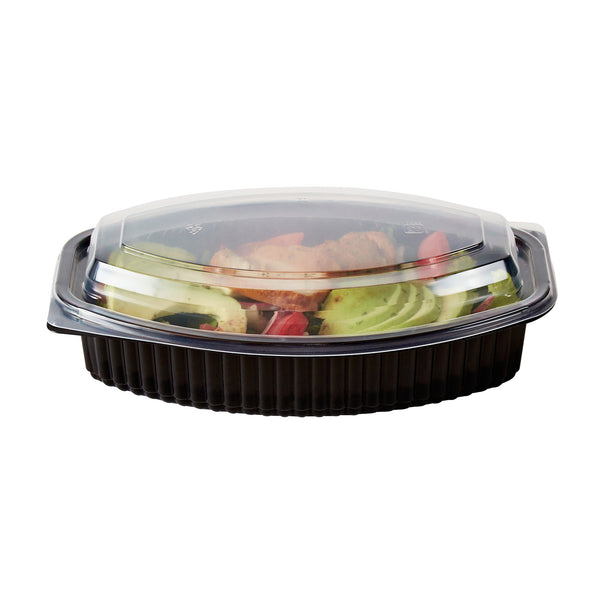 28 OZ OVAL BLACK PLASTIC FOOD CONTAINER - WITH CLEAR LID