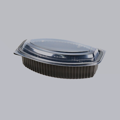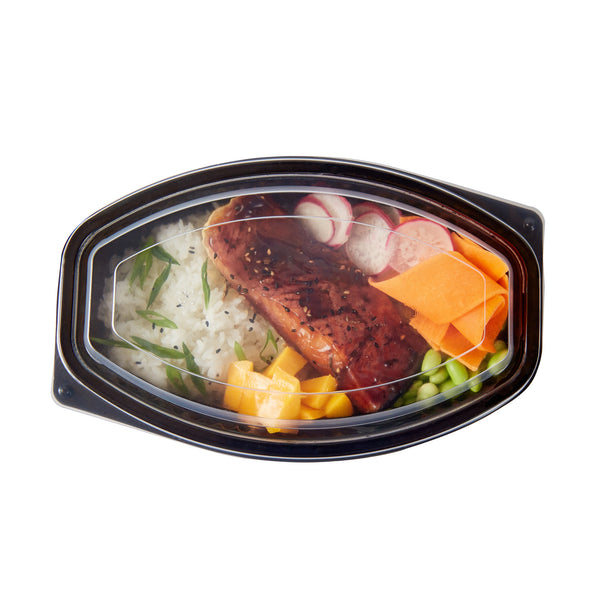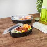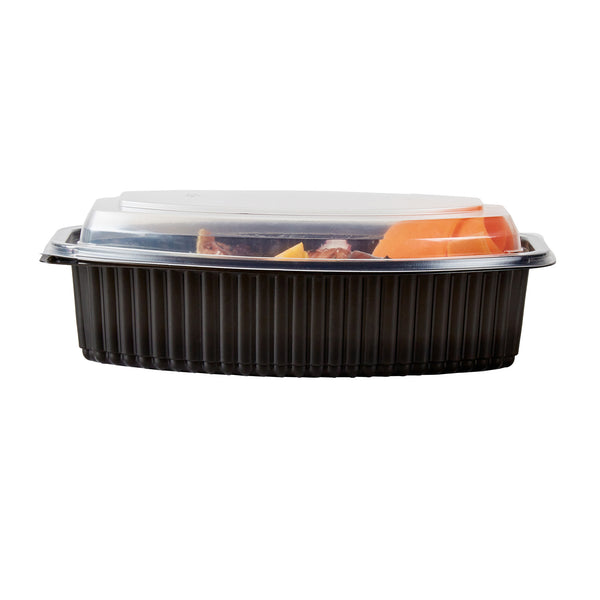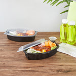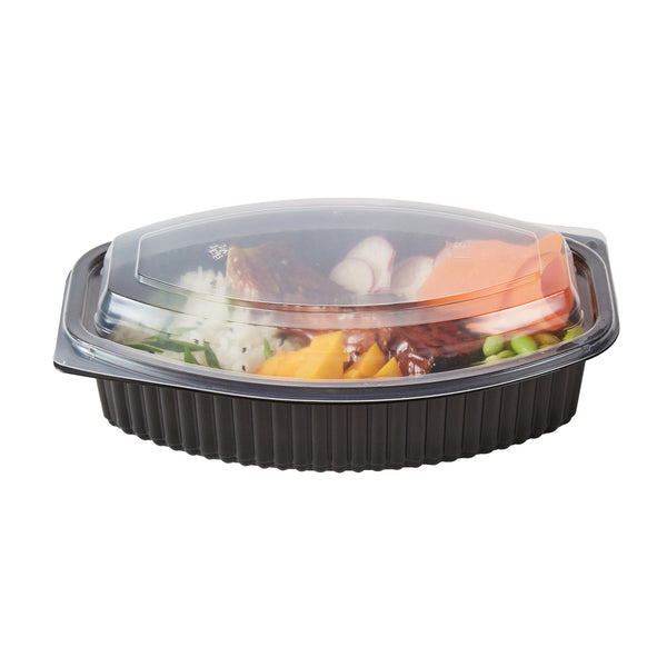 32 OZ OVAL BLACK PLASTIC FOOD CONTAINER - WITH CLEAR LID