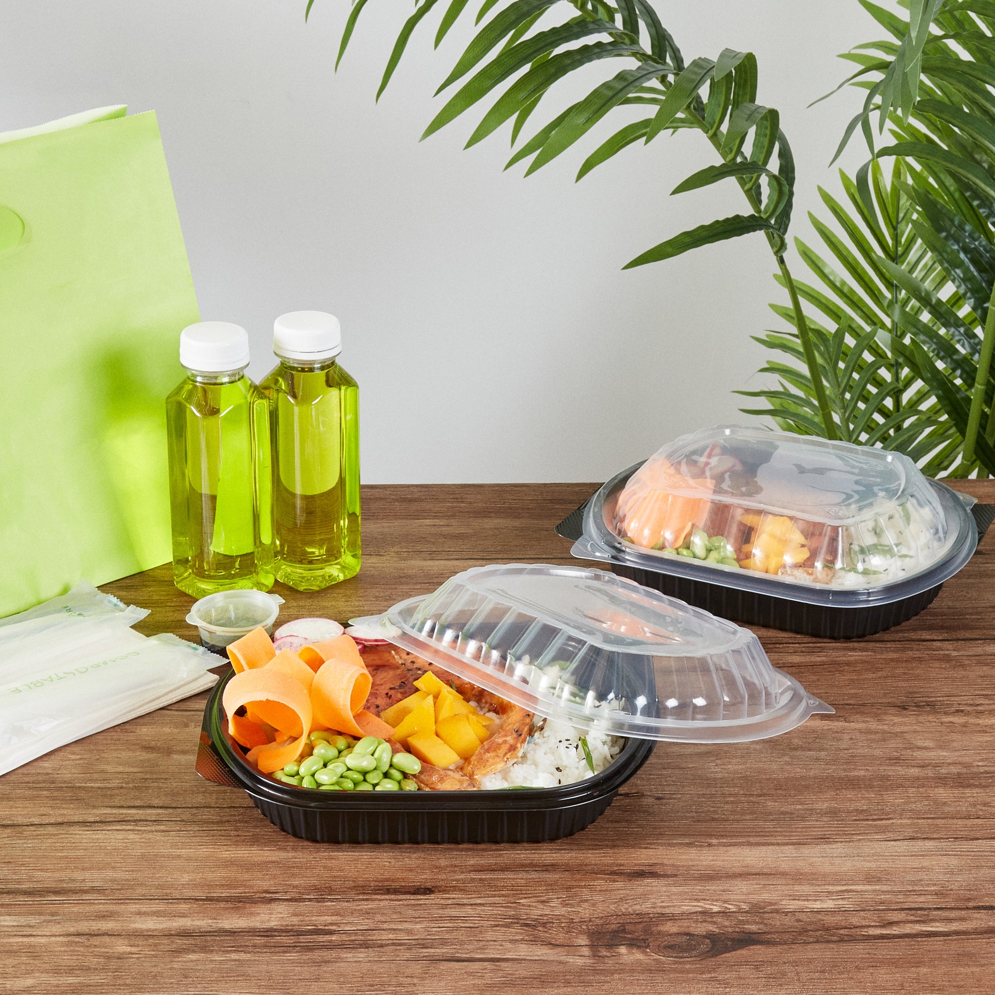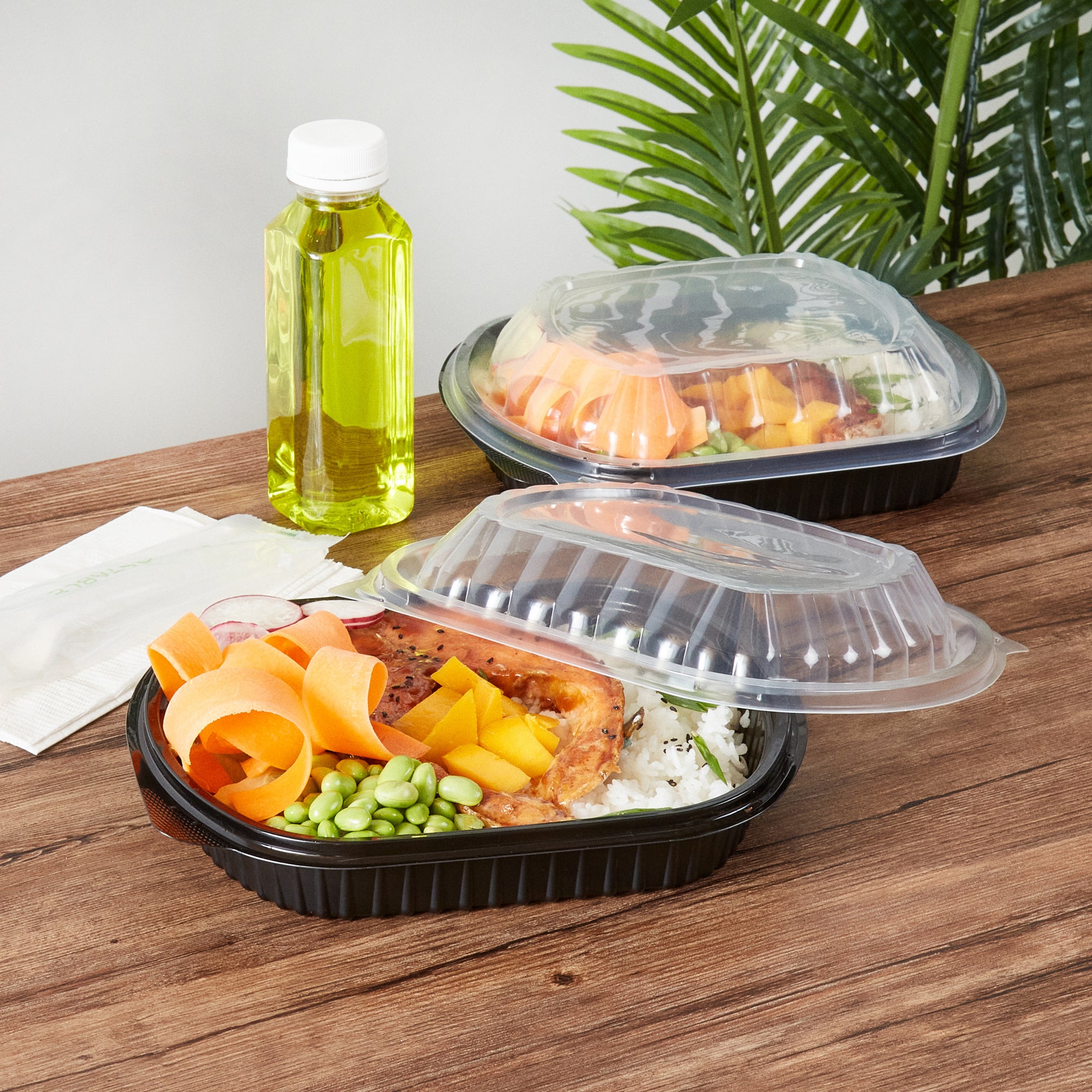 Elevate your food packaging with our Chef 101 34-ounce Oval Black Plastic Food Containers. These plastic food containers come with a clear plastic lid and form a secure seal to prevent spills, keeping your food intact in transit. Designed to be microwave-safe, these to go containers offer customers the convenience of reheating meals without the need to transfer to another dish. The clear lids of these take out containers provide excellent visibility for easy content identification. These carry out containers feature a black finish, adding a touch of sophistication to any takeaway meal. Ideal for leftover storage, these plastic containers with lids are freezer-safe and let you refrigerate your food for later use. For eco-conscious foodservice establishments, these takeaway containers are recyclable and help minimize your carbon footprint. These food containers with lids are disposable and can be discarded after use, facilitating an easy cleanup. Measuring 9.5 inches in length by 8 inches in width by 2.75 inches in height, these take out boxes have a capacity of 34 ounces making them perfect for a variety of dishes. Sold in a 100 count box.