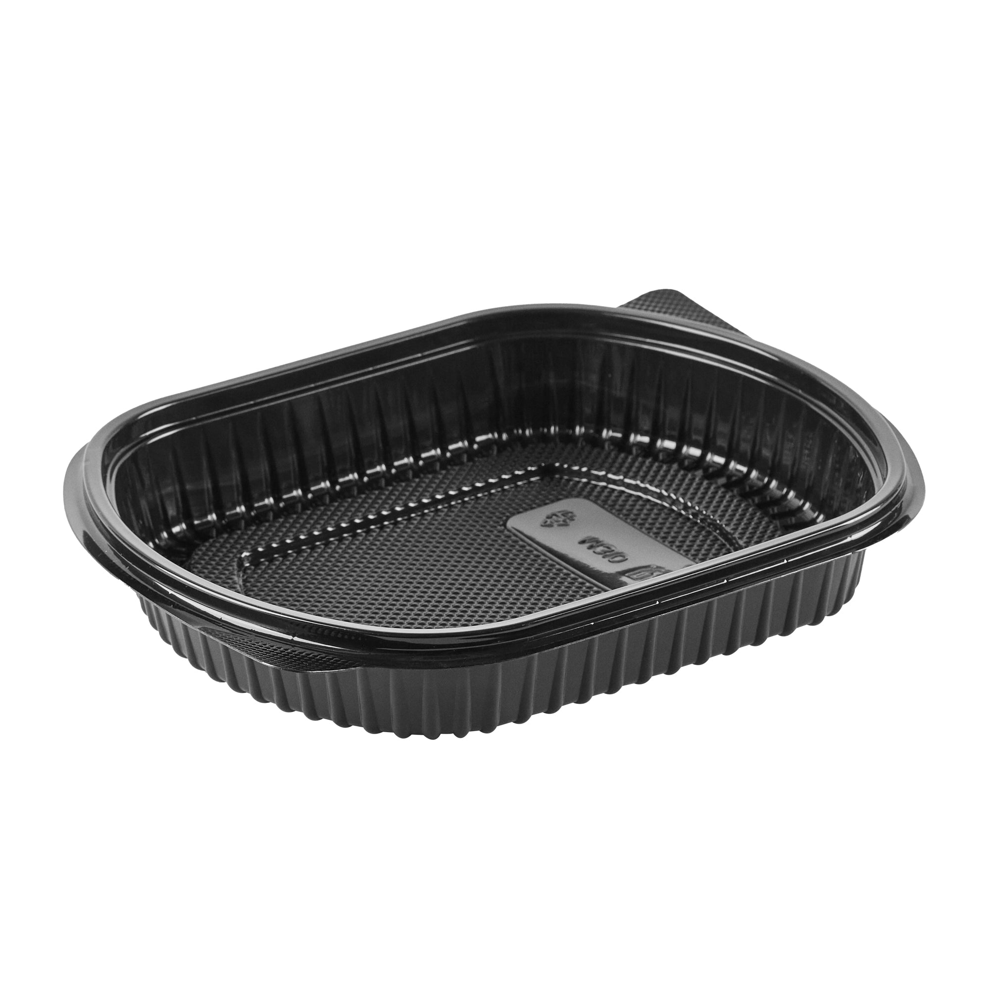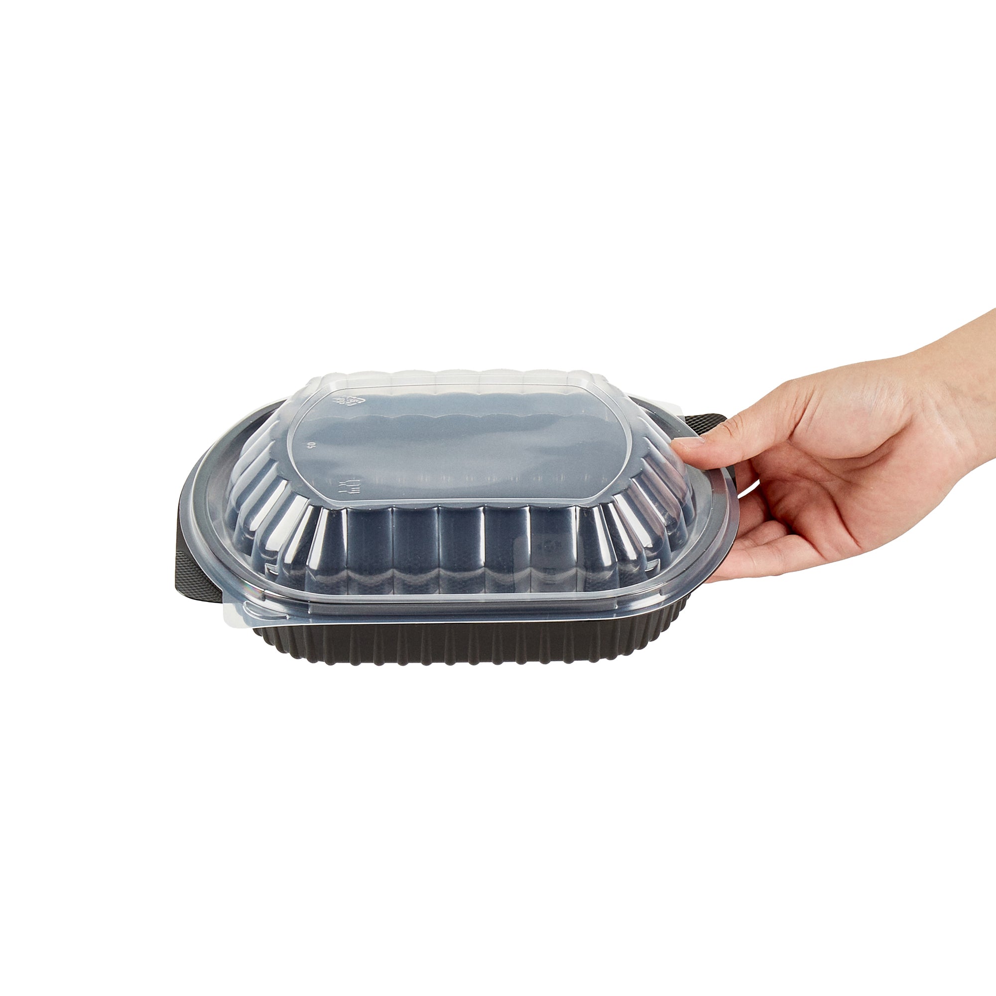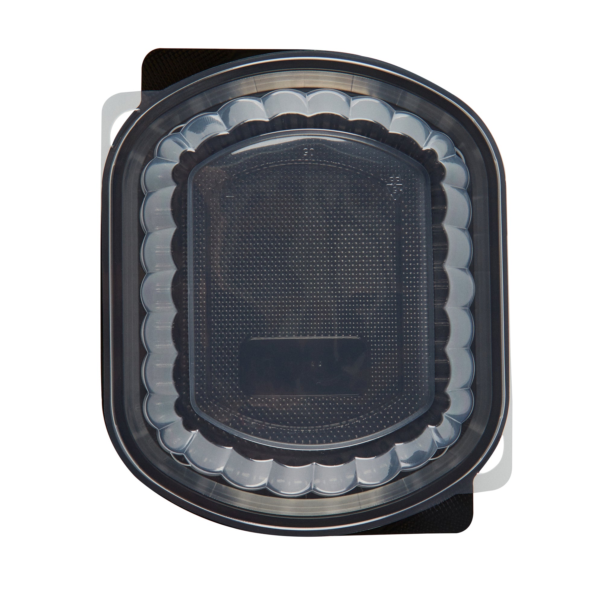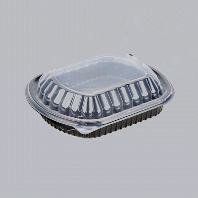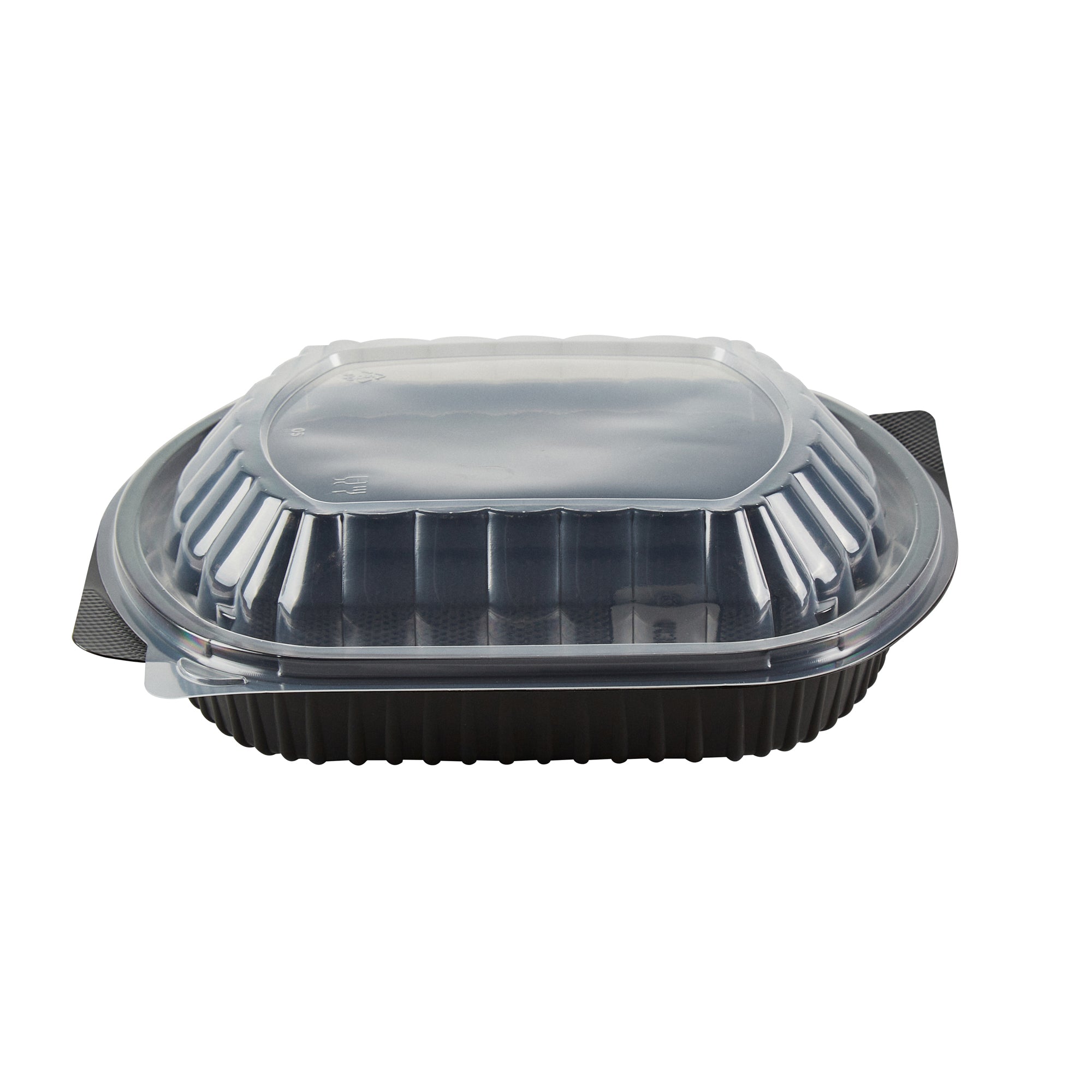 34 OZ OVAL BLACK PLASTIC FOOD CONTAINER - WITH CLEAR LID