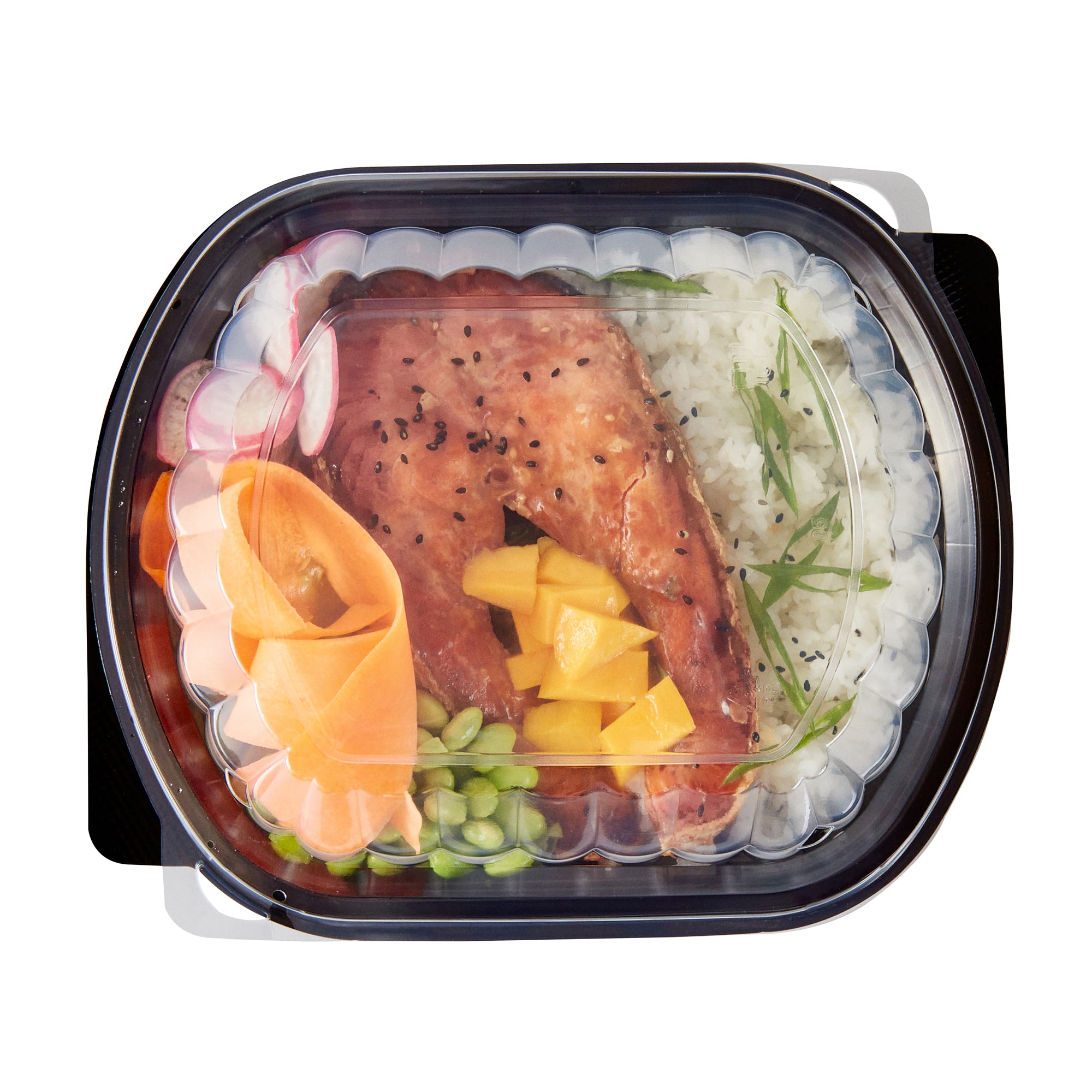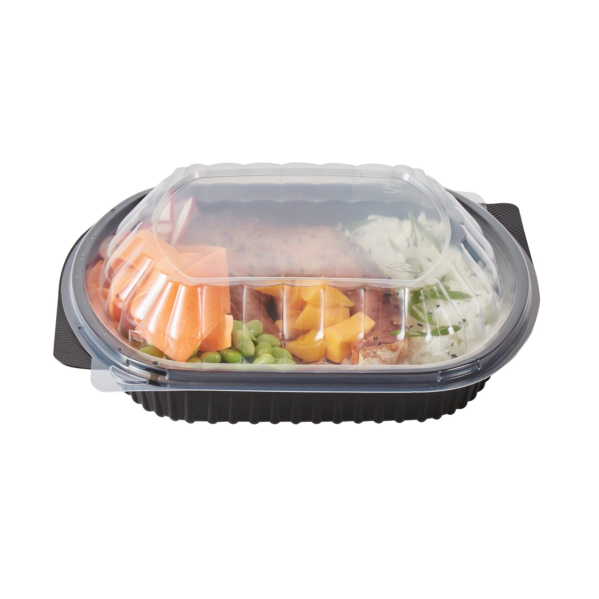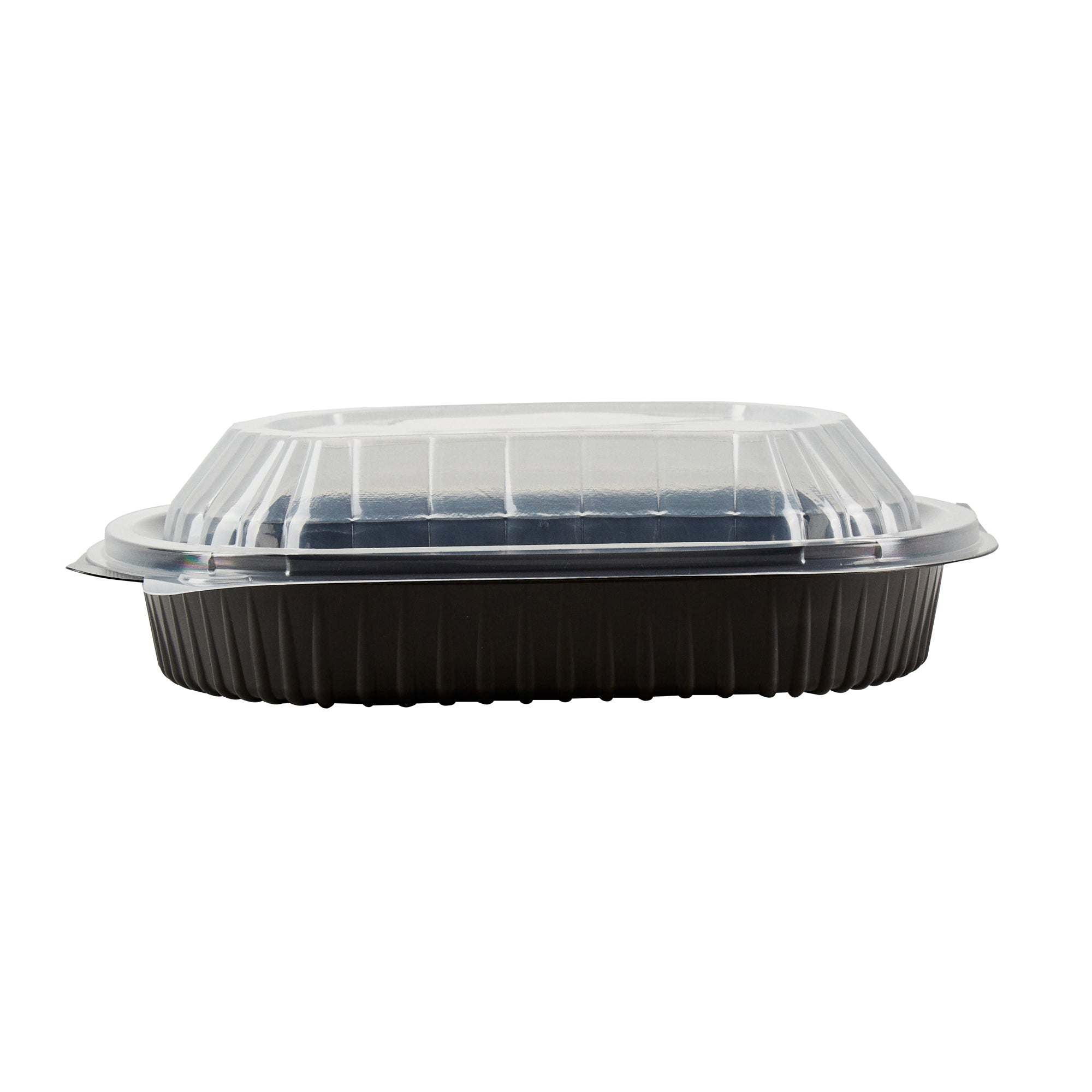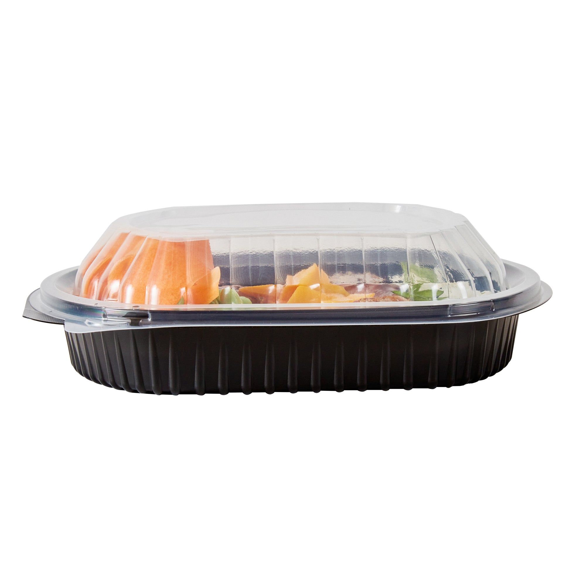 34 OZ OVAL BLACK PLASTIC FOOD CONTAINER - WITH CLEAR LID