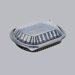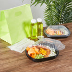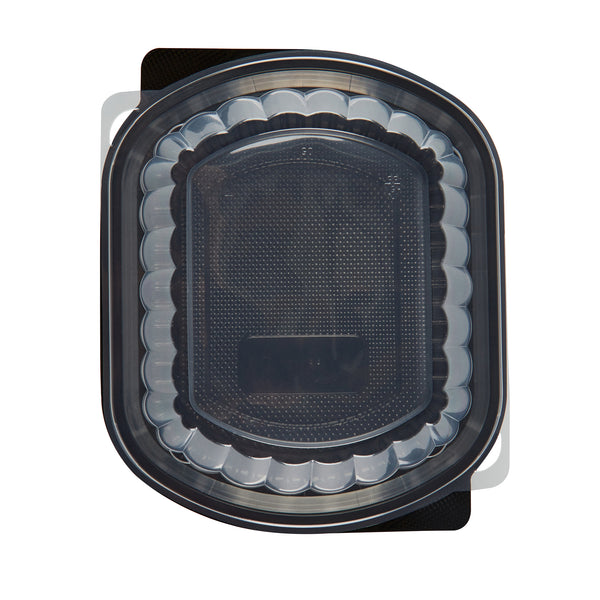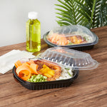 34 OZ OVAL BLACK PLASTIC FOOD CONTAINER - WITH CLEAR LID
