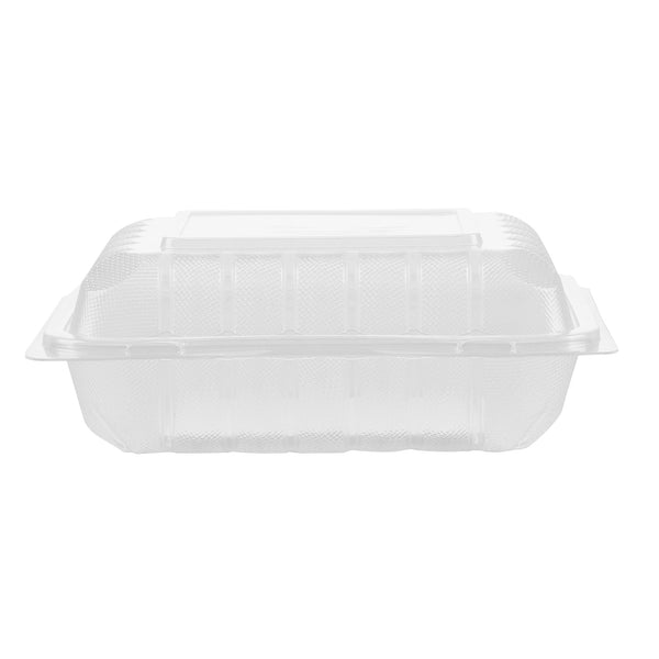 34 OZ SQUARE CLEAR PLASTIC CLAMSHELL CONTAINER - MICROWAVABLE