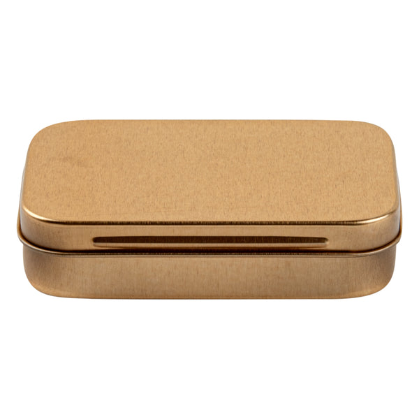 4 OZ RECTANGLE GOLD TIN CONTAINER - WITH HINGED LID