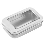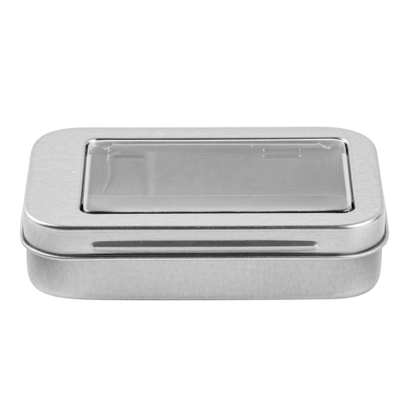 4 OZ RECTANGLE SILVER TIN CONTAINER - WITH WINDOW LID