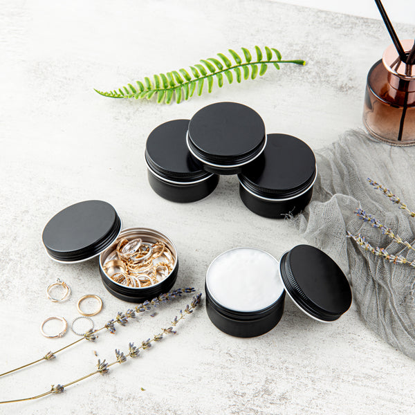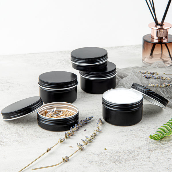 Carry your candies for your road trips using our 4-ounce Round Black Tin Containers. Made from premium aluminum metal, these airtight containers are durable and do not break or rust. For a smooth delivery, these metal storage boxes come with lids that have a screw-open mechanism, securing the contents inside. With a lightweight and compact construction, these aluminum boxes for storage easily fit in your bags, allowing you to carry your items anywhere. The black finish of these round decorative storage containers gives them a chic finish. With a 4-ounce capacity, these containers for storage measure 2.75 inches in diameter by 1.75 inches in height each. Sold in a 10 count box.