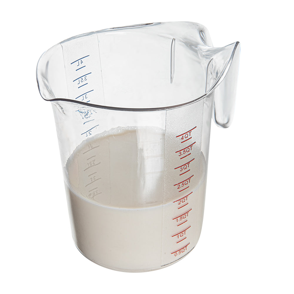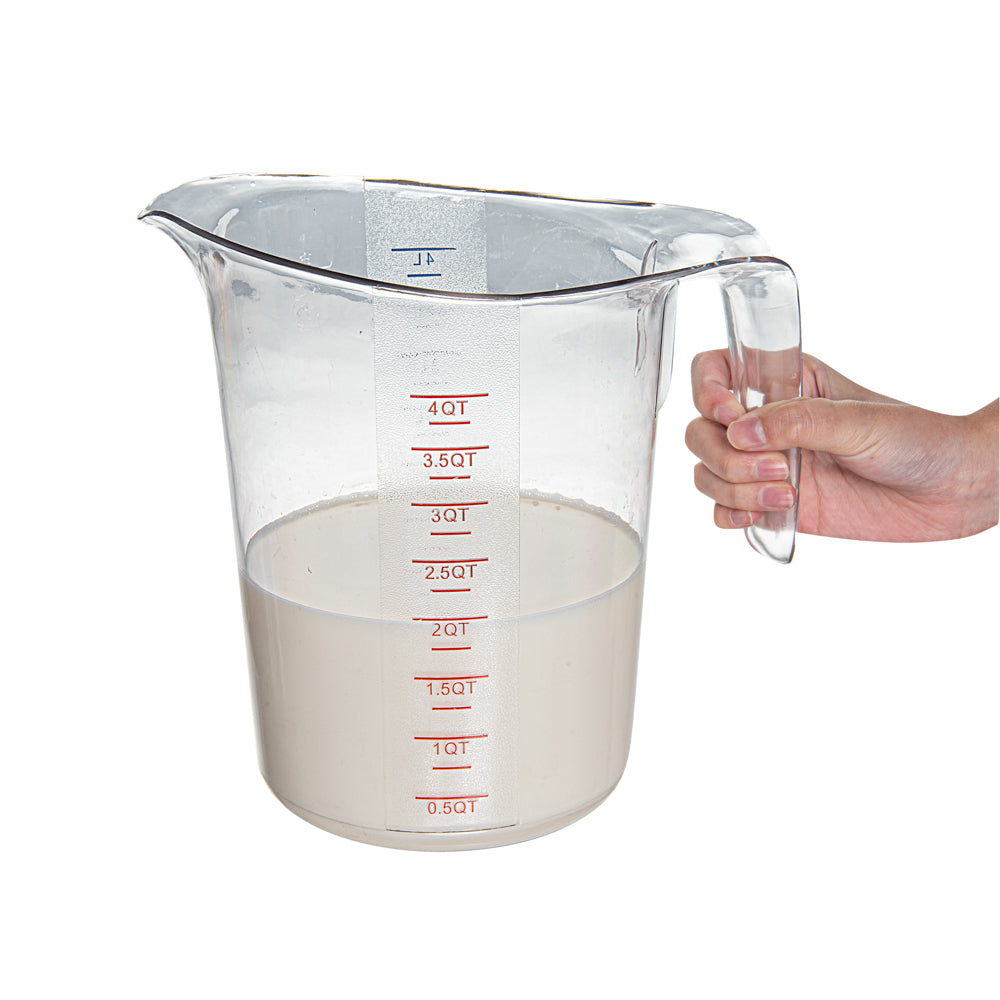These plastic measuring jars have both metric and imperial units embossed on them for precise measurement. Double the benefits.