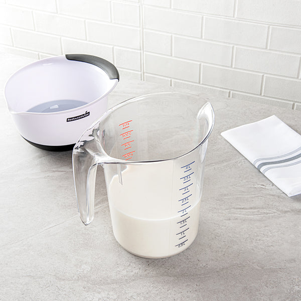 - Embossed graduations for precise cooking and baking, eliminating guesswork