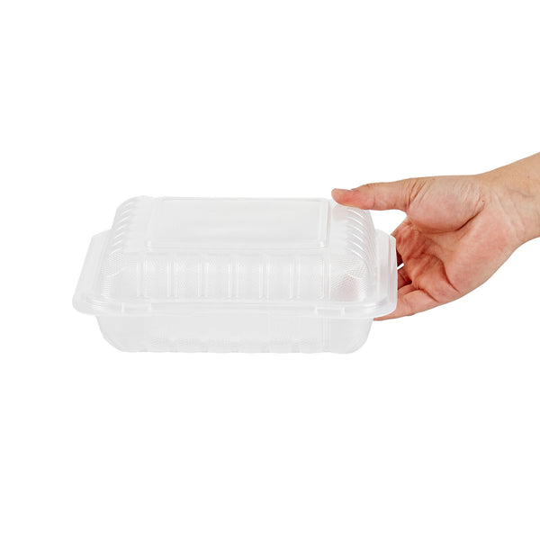 40 OZ SQUARE CLEAR PLASTIC CLAMSHELL CONTAINER - MICROWAVABLE