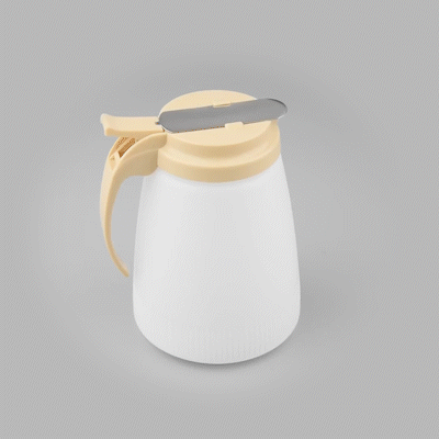 - Sliding thumb tab allows controlled pouring of sauces and syrups