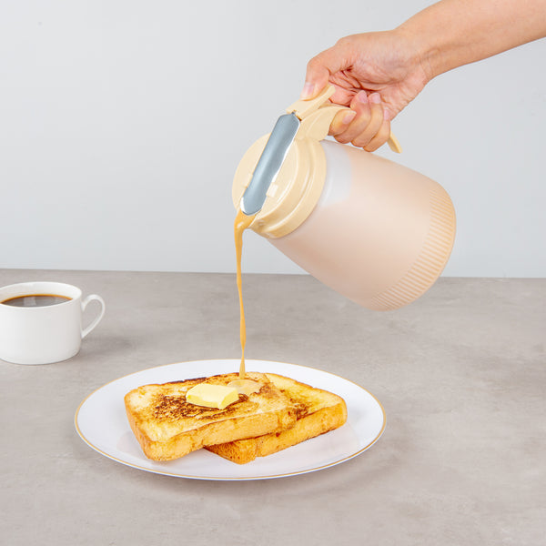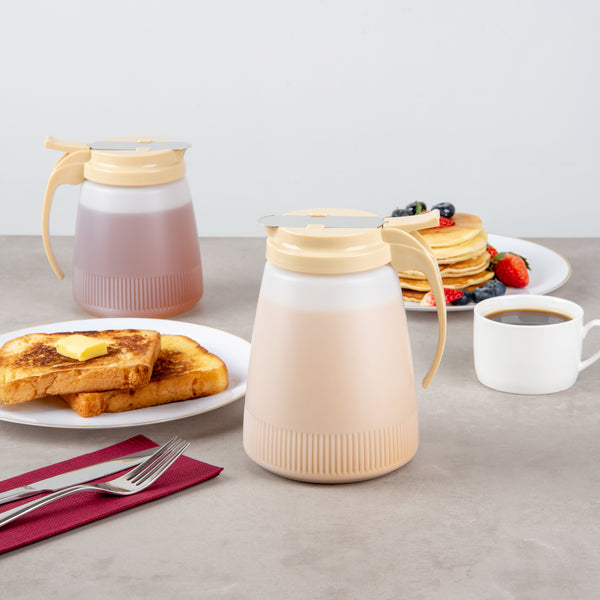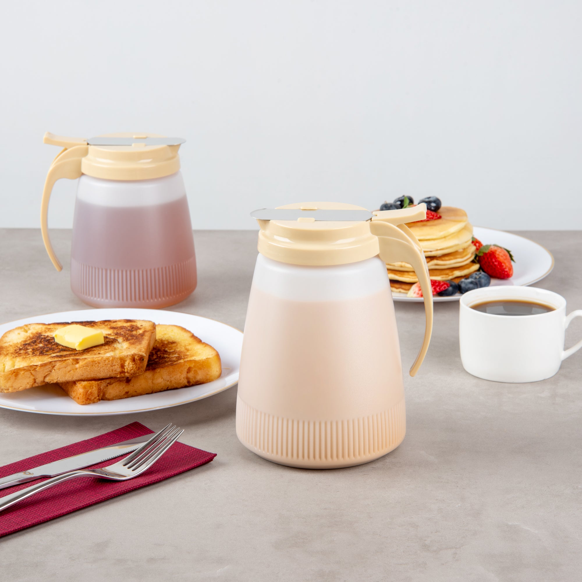- Easy-to-grip handle for easy carrying and pouring of syrups
