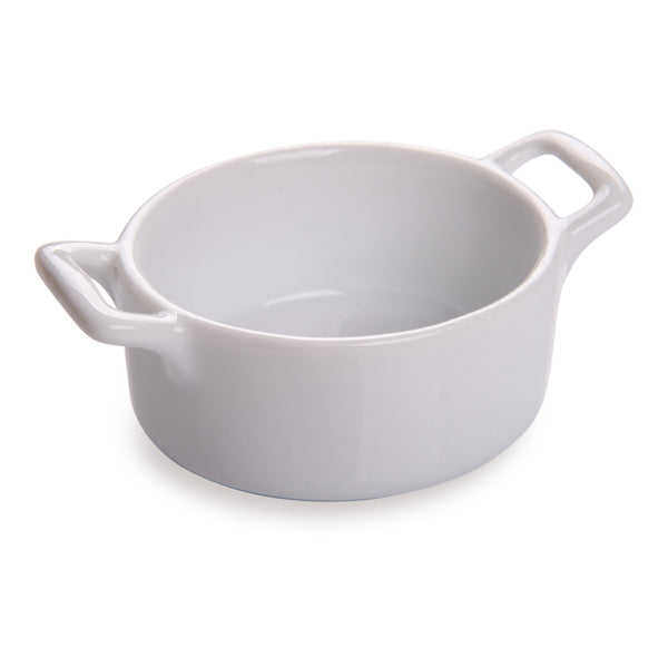 Elevate your culinary presentation with our Chef 101 5-ounce Oval White Porcelain Mini Oval Casserole Dishes. The chip-resistant porcelain mini casserole dishes offer a durable yet elegant solution for serving individual portions, thanks to their porcelain construction. Their oven-safe feature allows for seamless transitions from oven to table, making it an indispensable mini oven-to-table cookware. Equipped with built-in handles, these individual baking dishes are ideal for baking sweet or savory dishes and serving them to your guests. Additionally, the microwave-safe quality ensures that entrees can be reheated quickly, accommodating the fast-paced demands of busy kitchen shifts. The greaseproof surface maintains the cleanliness of this casserole dish, even with oily dishes, ensuring an impeccable dining experience. These 5-ounce oval small casserole dishes measure 4.1 inches long by 2.8 inches wide and ship in a 10 count box.