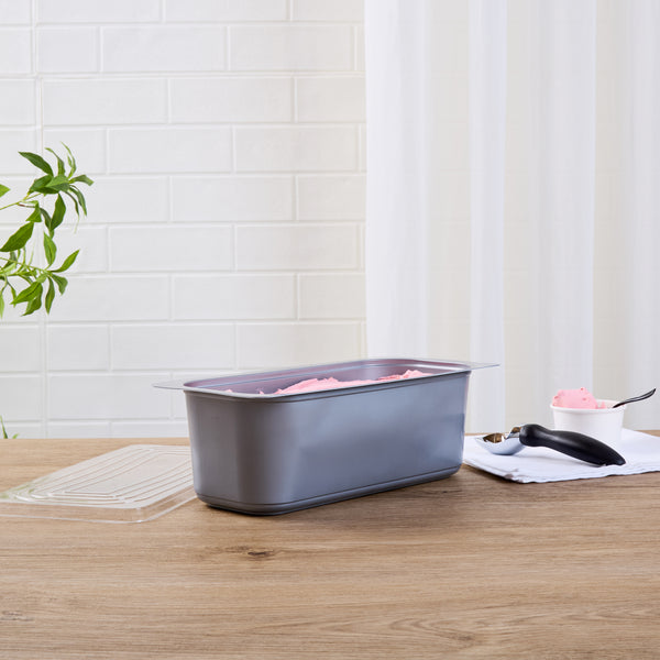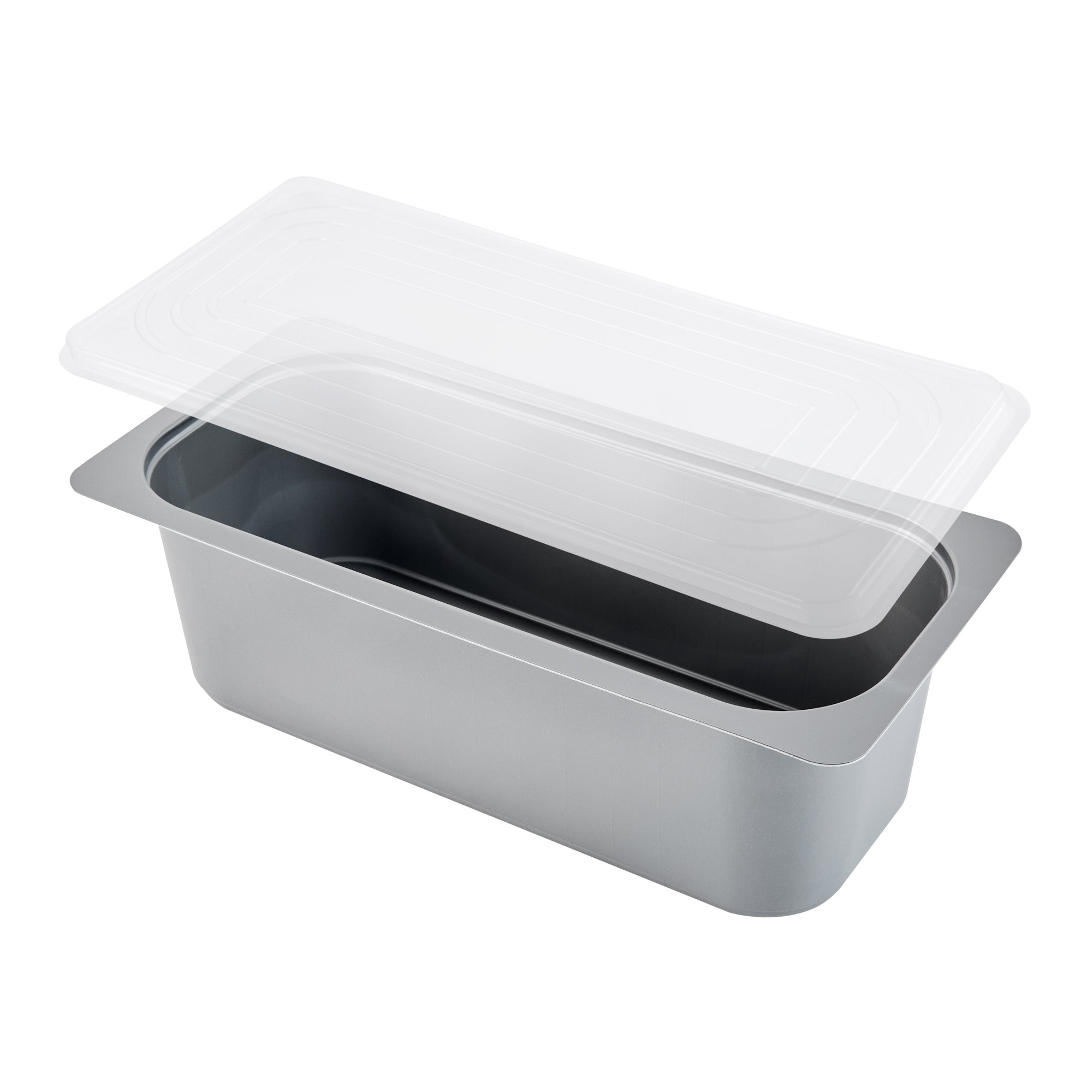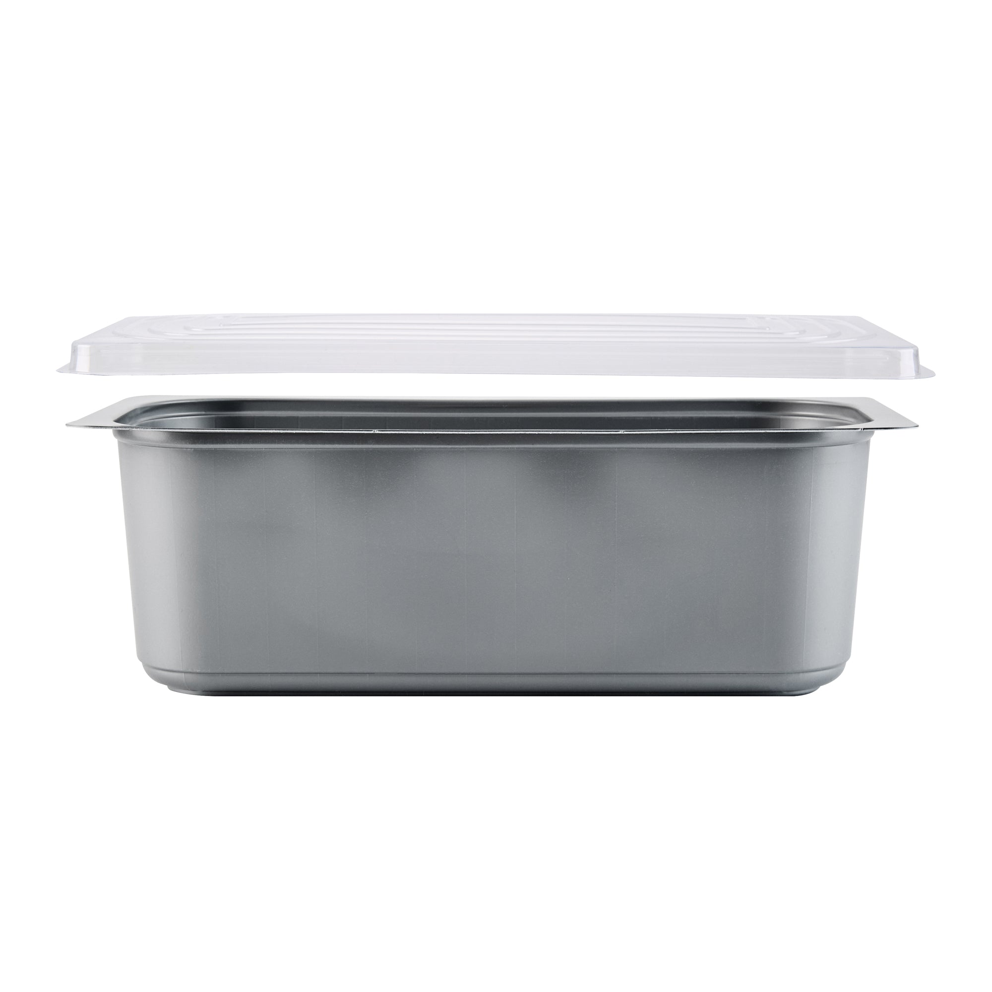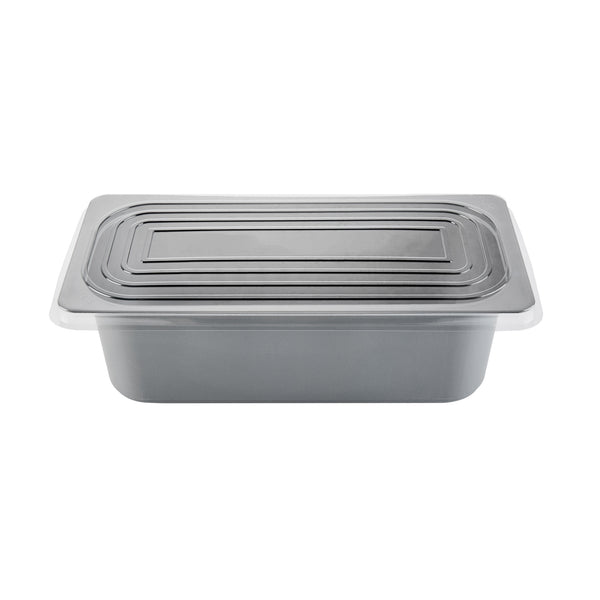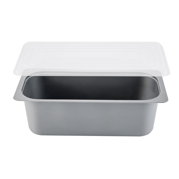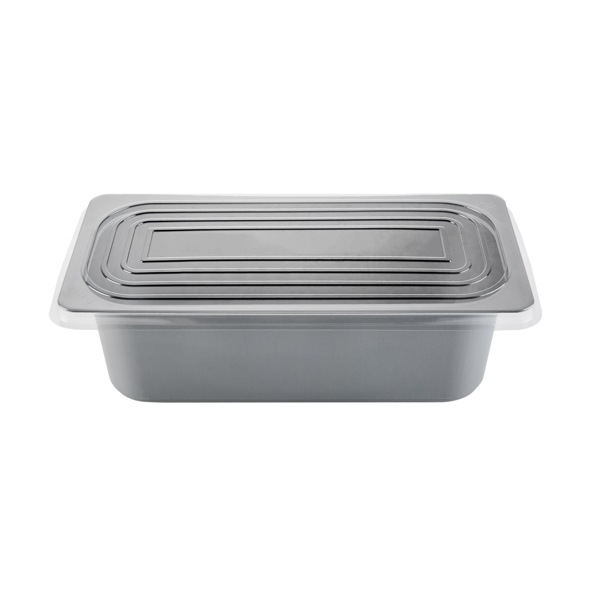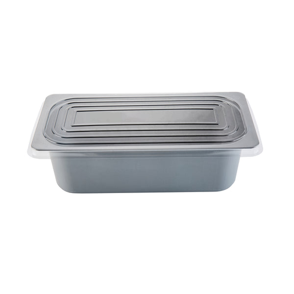 5 QT RECTANGLE GRAY PLASTIC ICE CREAM CONTAINER - WITH CLEAR LID