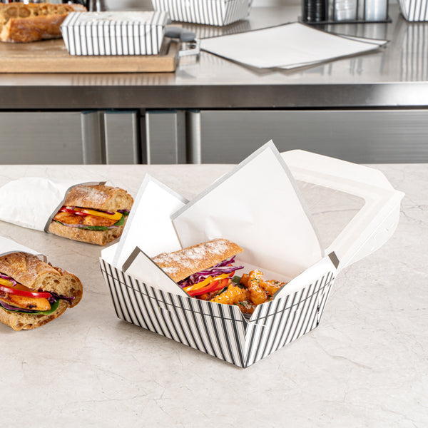 - Durable paper ensures that food remains secure and undamaged during delivery