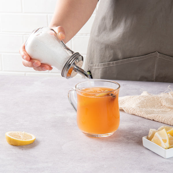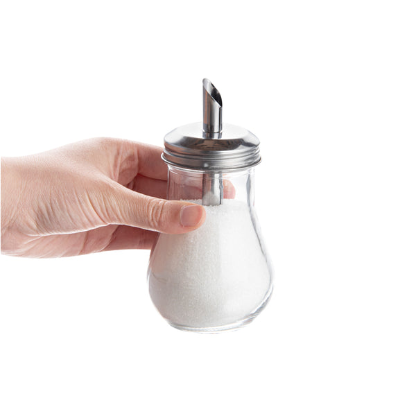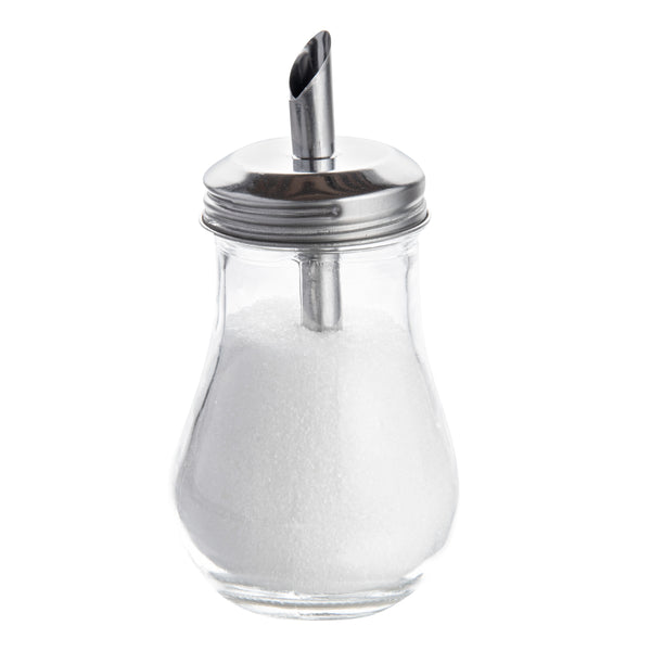 Elevate your spice pourer presentation using our Chef 101 6-Ounce Glass Sauce / Sugar Pourer. To securely hold hot and cold ingredients without stress, this glass sauce pourer is FDA-approved. This glass sugar pourer comes with a retro, spout lid to easily dispense any desired sweetener or spice onto food or drinks. Plus, the spout top of this retro sugar pourer is stainless steel for long-lasting use. With a versatile design, this glass sugar pourer can hold various shredded cheeses and condiments of your choice. To prevent time-consuming washing and scrubbing, this spout pourer is easily dishwashable. With a clear finish, this pourer glass allows to see ingredients inside for a faster refilling process. This glass sauce pourer has a 6-ounce capacity and measures 2.75 inches long by 2.75 inches wide by 5.25 inches tall. Sold in a 1 count box.