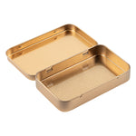 6 OZ RECTANGLE GOLD TIN CONTAINER - WITH HINGED LID