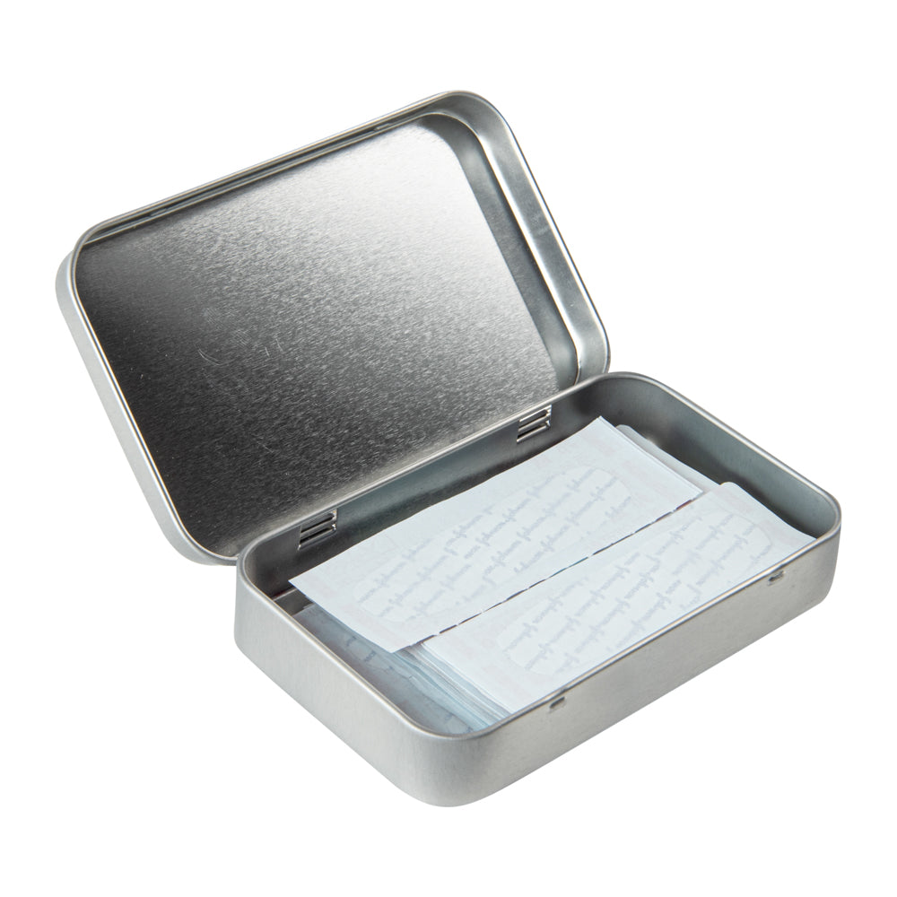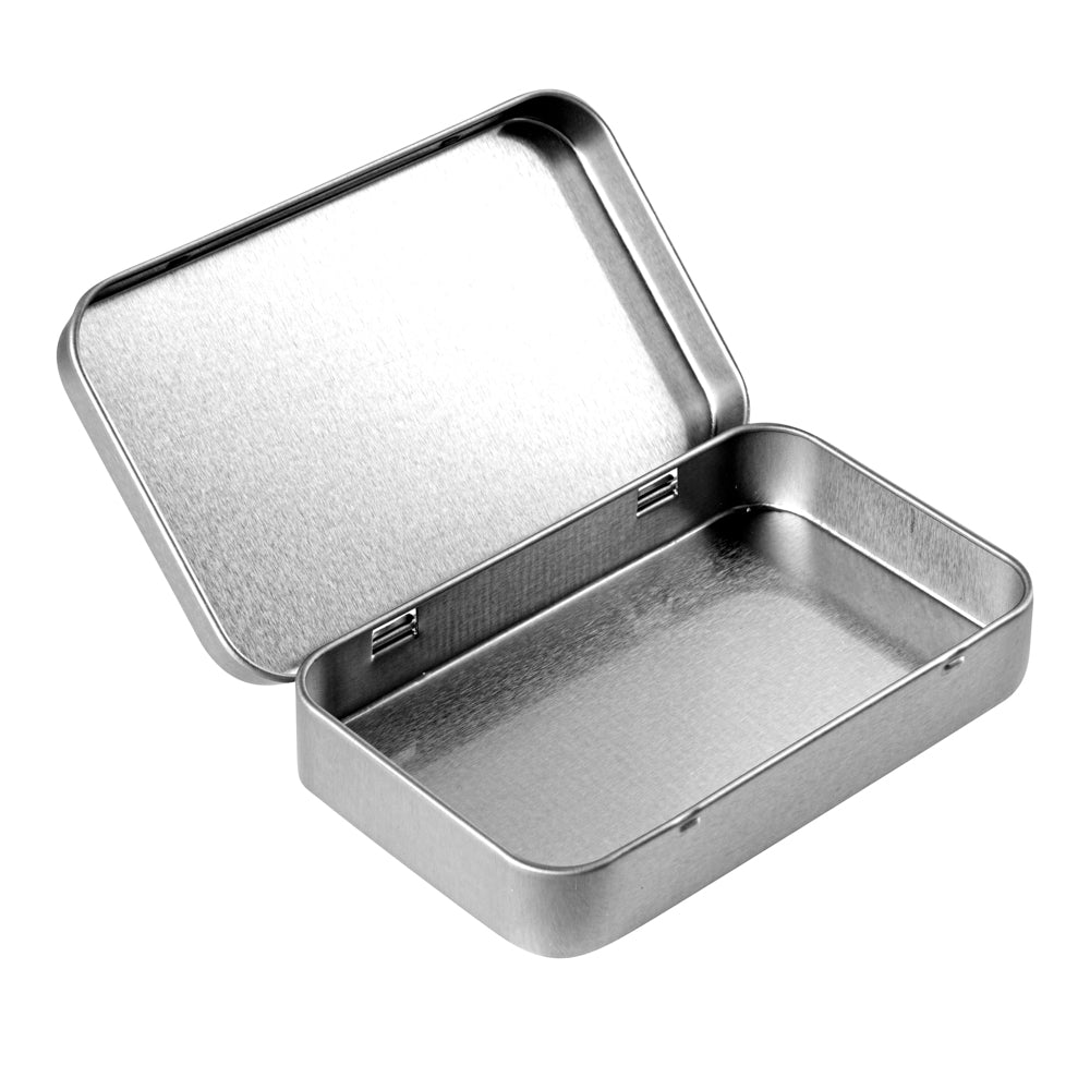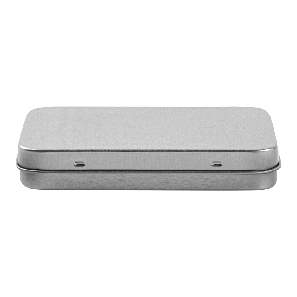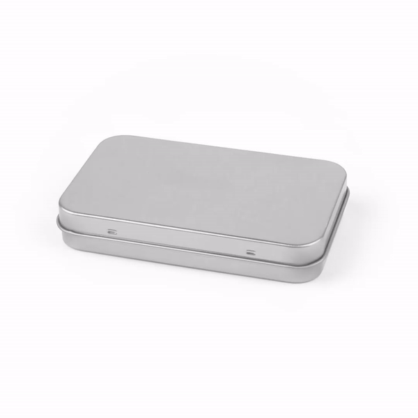 6 OZ RECTANGLE SILVER TIN CONTAINER - WITH HINGED LID
