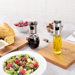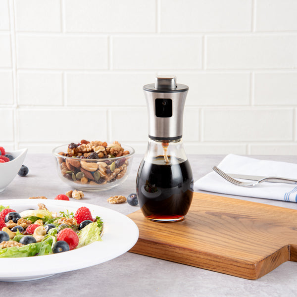 Spray salads with dressings using our Chef 101 7-Ounce Glass Oil Sprayers. Designed with a stainless steel sprayer, this olive oil dispenser evenly mists your meats and vegetables to add more flavor while cooking. Designed with a glass bottle, this olive oil sprayer has a transparent finish to keep an eye on the amount of oil inside. For easy refilling, this oil and vinegar bottle's sprayer can be effortlessly removed. This olive oil dispenser holds up to 7 ounces of liquids and measures 2.75 inches long by 6.75 inches tall. Sold in a 1 count box.