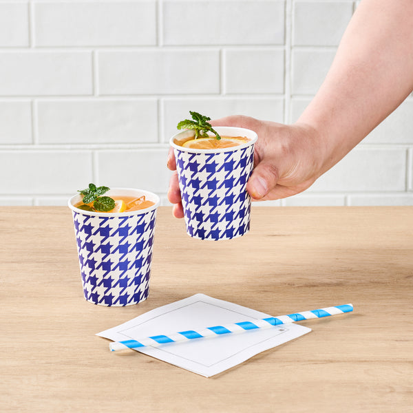 7 OZ ROUND BLUE HOUNDSTOOTH PAPER COLD CUP